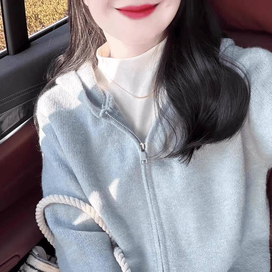 不起球100%纯棉针织毛衣秋冬女修身 内搭配大衣半高领全棉线打底衫
