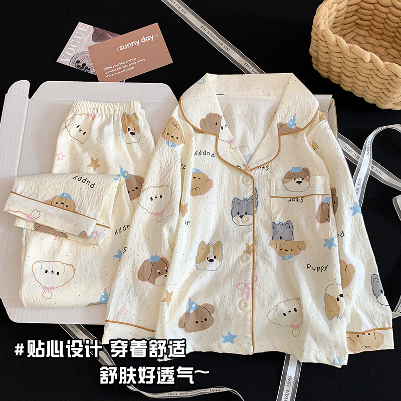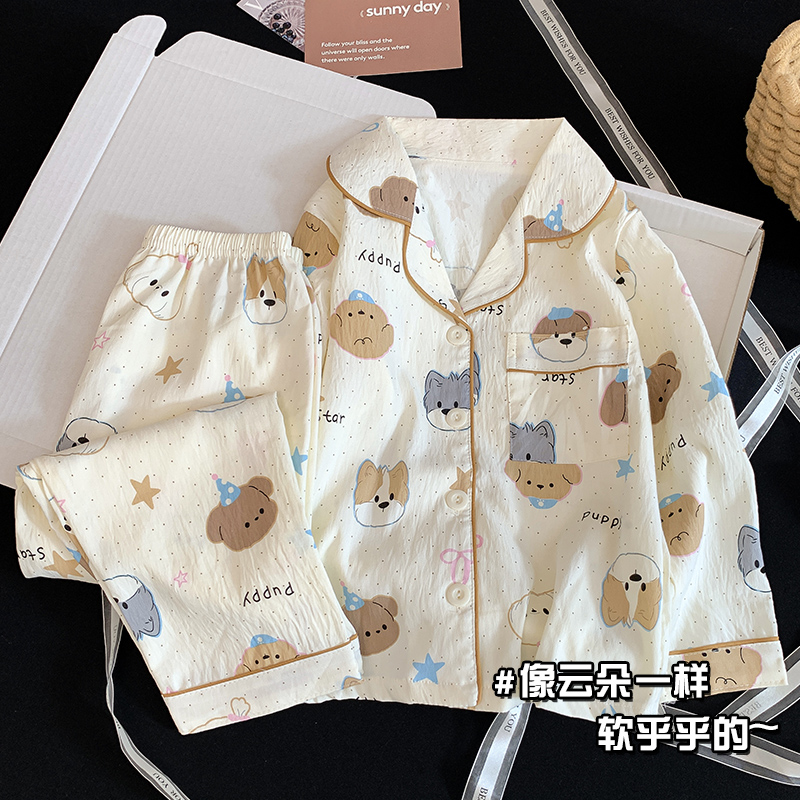睡衣女家居服套装 长袖 云朵 儿童卡通小狗女童2025新款 中大童春秋季