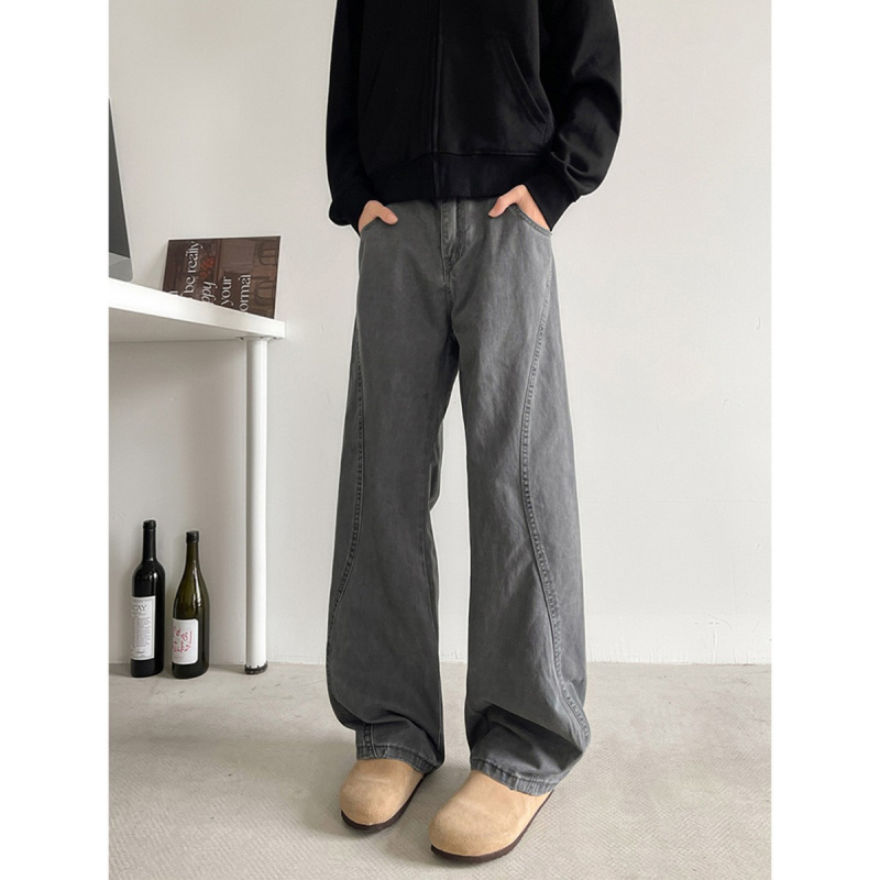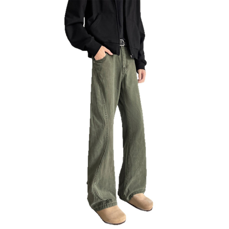 高街大码 男夏季 水洗休闲长裤 cleanfit工装 子 美式 裤 拼接微喇牛仔裤