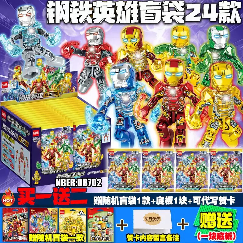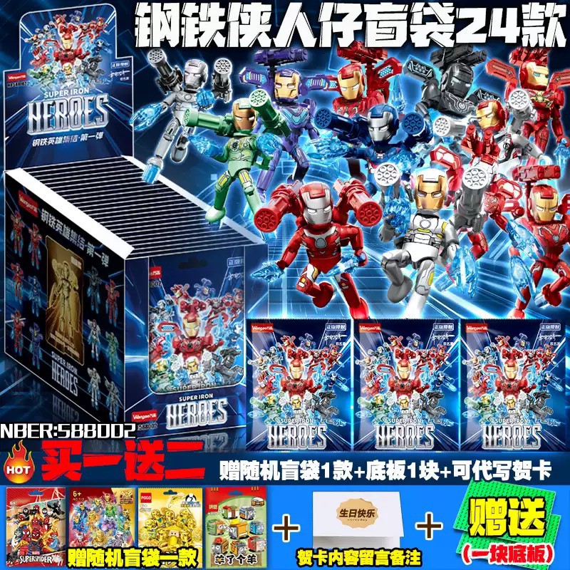 新款 玩具男 钢铁侠超可动人仔盲袋积木飞天黄金高达盲盒抽抽乐拼装