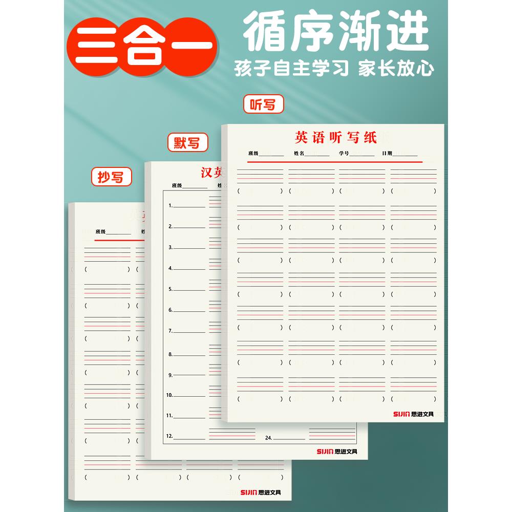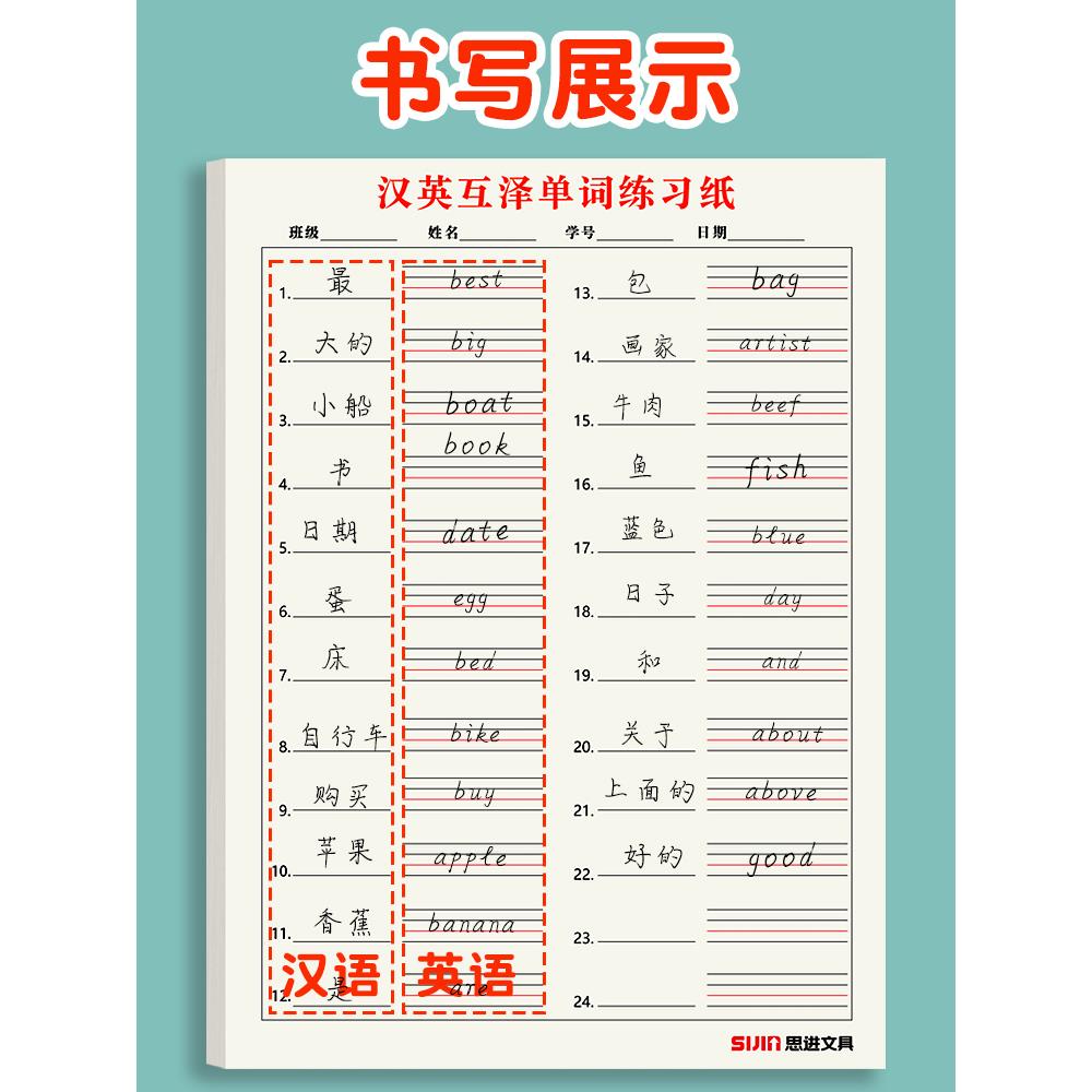 小学生专用每日听写本汉英互译练习纸英语单词听写纸三四五年级汉语翻译英文记忆作业本英语四线三格加厚