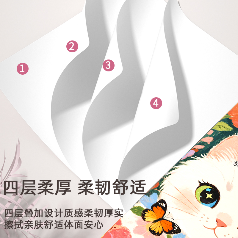 漫花4包抽纸整箱加大加长餐巾纸家用实惠装 卫生面aj巾纸抽纸巾