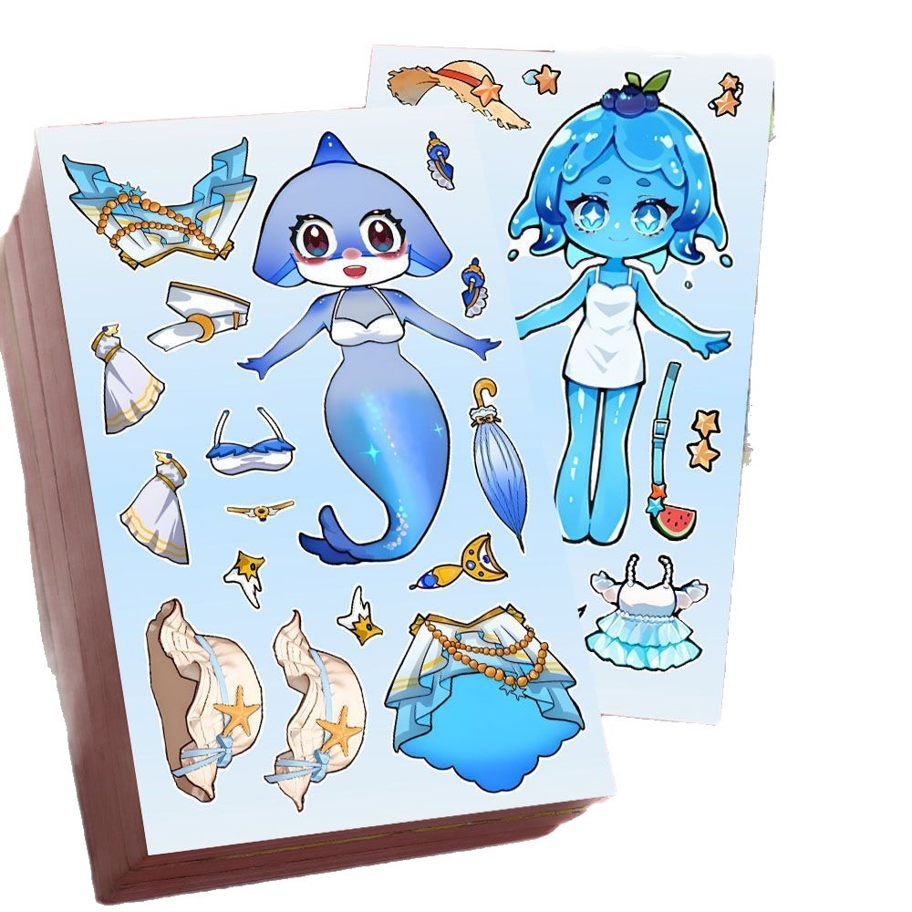人鱼水母AI国外山海经卡通角色6女孩子手工diy换装 贴纸小学生贴画