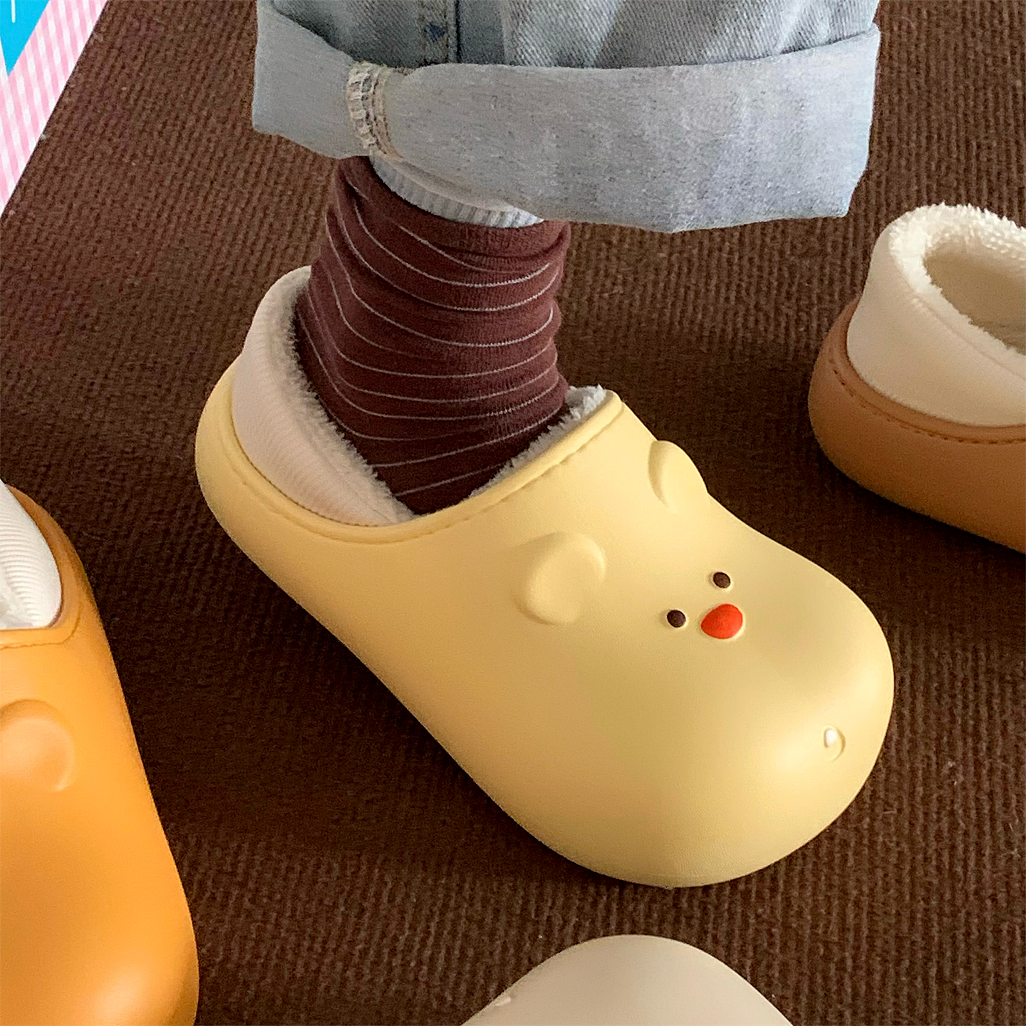 保暖包跟月子鞋 冬季 女可爱小熊防水棉拖鞋 防滑少女心室内外穿棉鞋