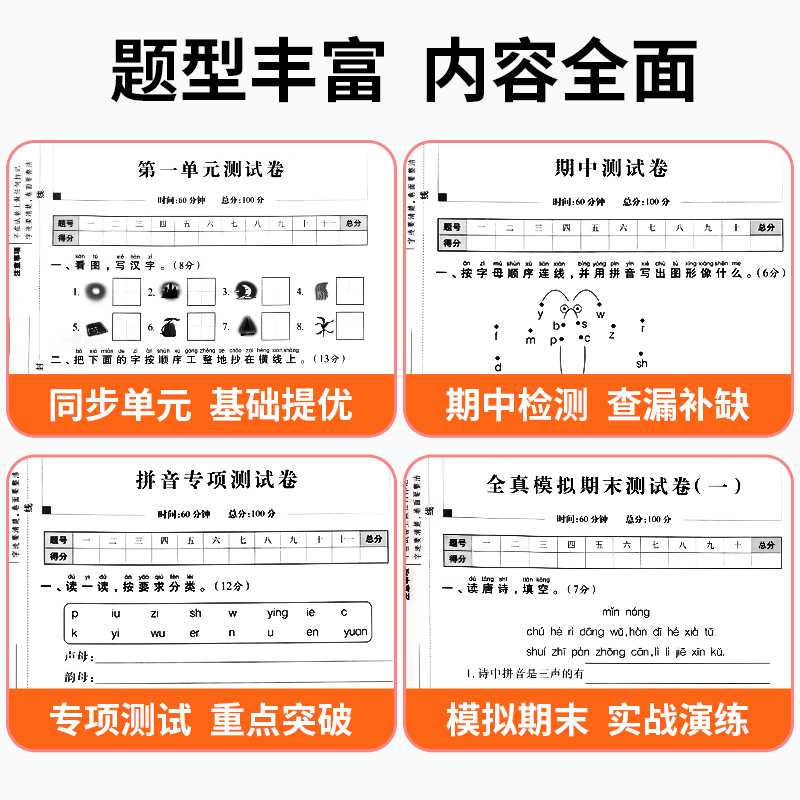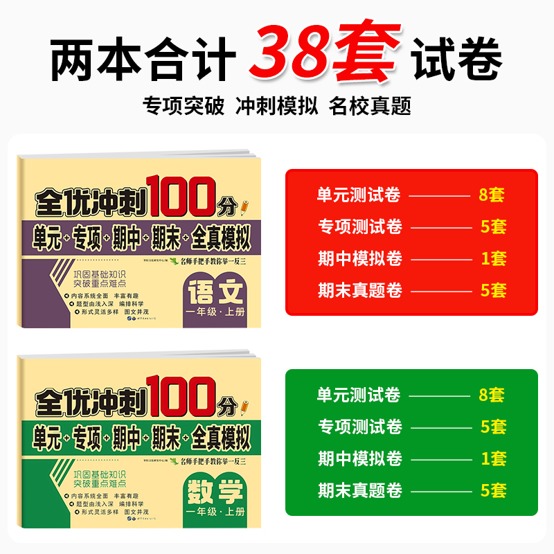 语文数学同步练习册小学卷子资料单元 全优冲刺100分测评卷人教部编版 期中期末考试卷练习题 一年级上下册试卷测试卷全套 2025新版