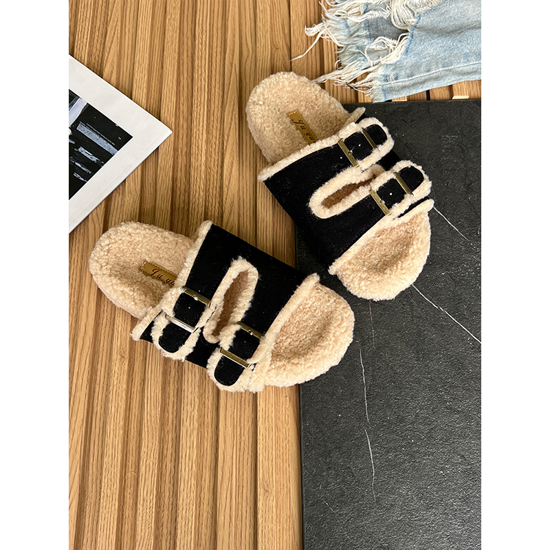 加绒毛茸茸厚底棉拖毛绒黑色 外穿2025年秋冬新款 勃肯毛毛拖鞋 女款