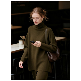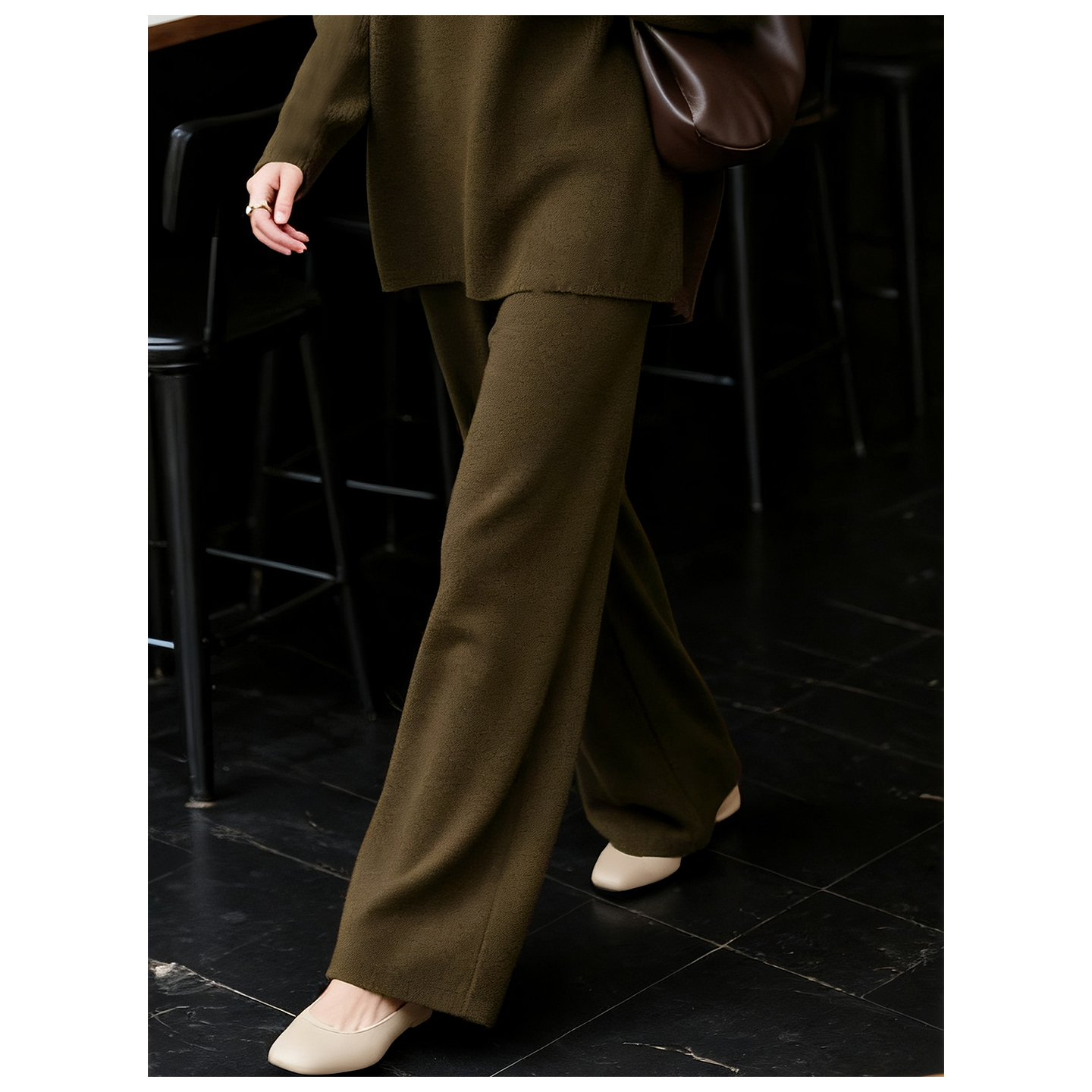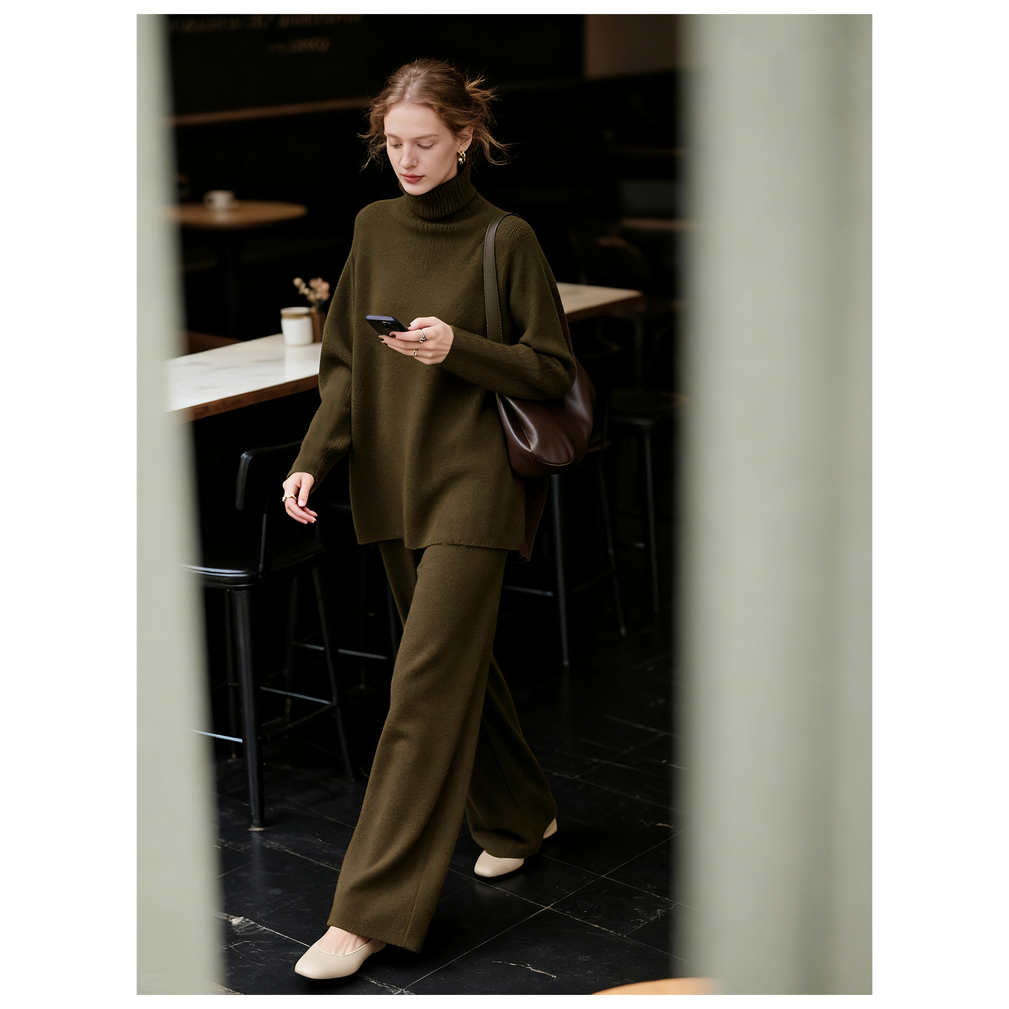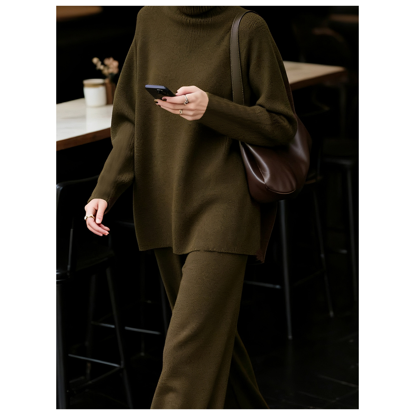 两件套 洋气复古半高领毛衣阔腿裤 咖色休闲套装 女2025年秋冬新款