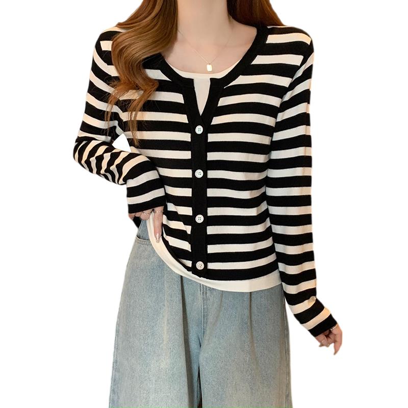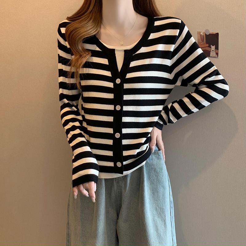 女秋冬2025新款 黑白条纹针织衫 毛衣打底衫 秋季 内搭可外穿上衣 长袖