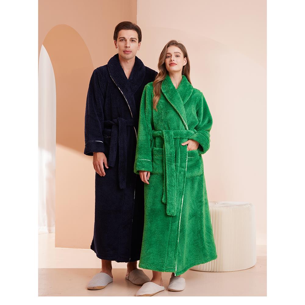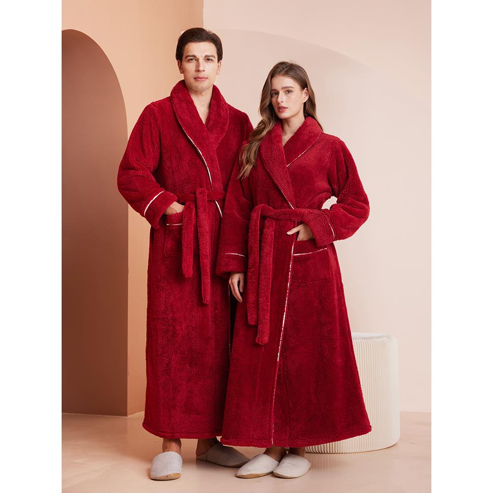 加肥大码 双面加绒睡袍男士 舒棉绒情侣浴袍女冬加厚睡衣 长款 秋冬季