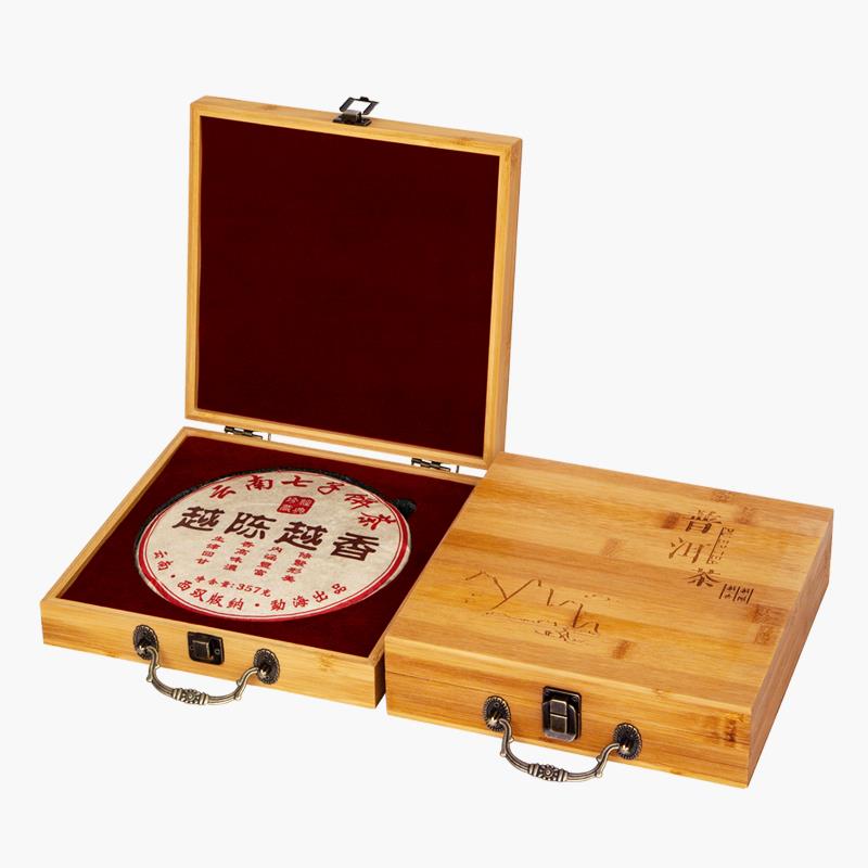 普洱茶饼盒357克竹茶包装 盒礼盒空盒木盒实木收纳单饼茶盒