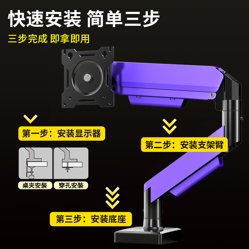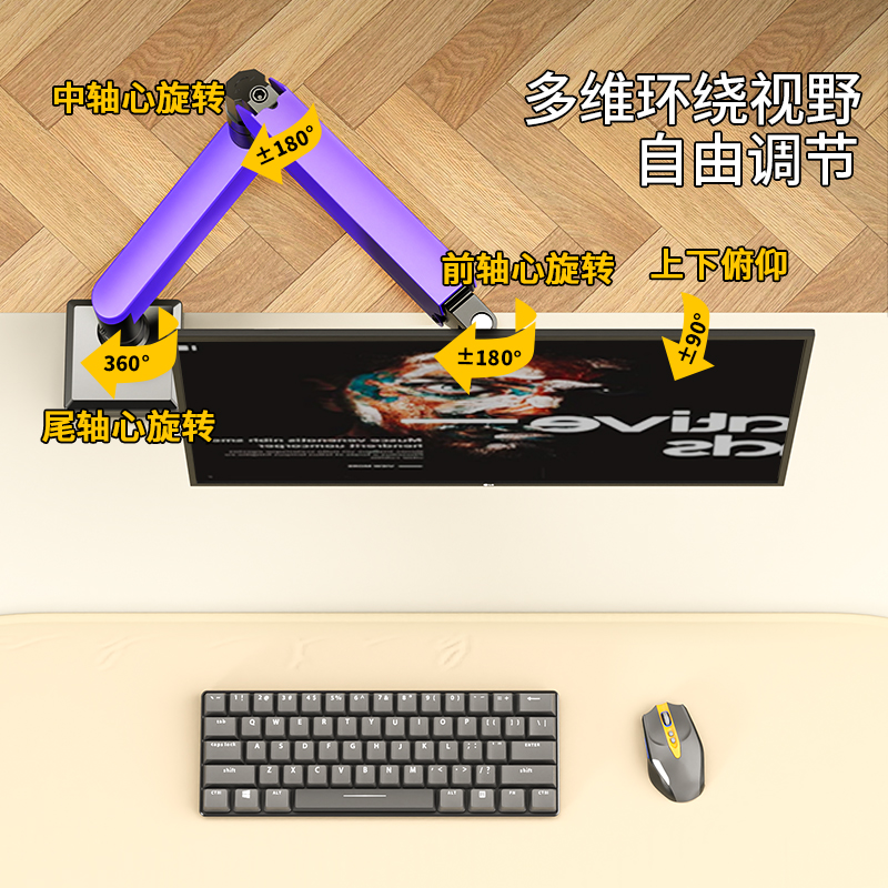 显示器支架气动旋转机械臂便升降捷副屏电脑显示屏幕悬臂台式 底座