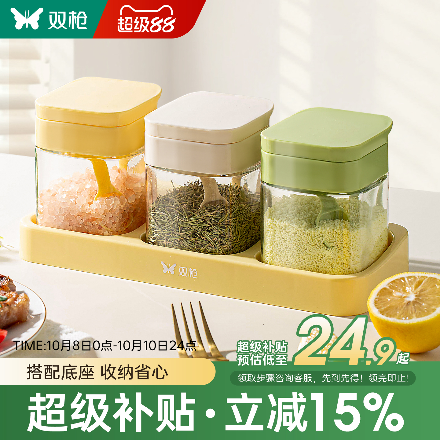 双枪厨房调料盒盐罐套装 家用盐味精调味罐厨房收纳盒密封防潮佐料