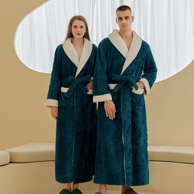 秋冬睡袍女秋冬季 双层加厚加绒情侣睡衣法兰绒加长1009c 2025新款