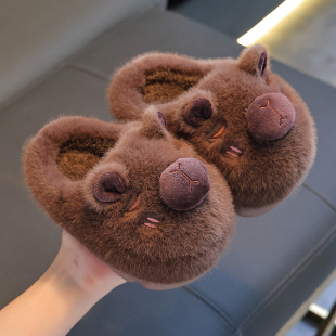 女 卡通可爱防滑室内软底亲子宝宝拖鞋 卡皮巴拉儿童棉拖鞋 男童冬季