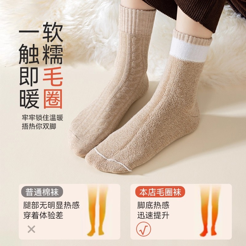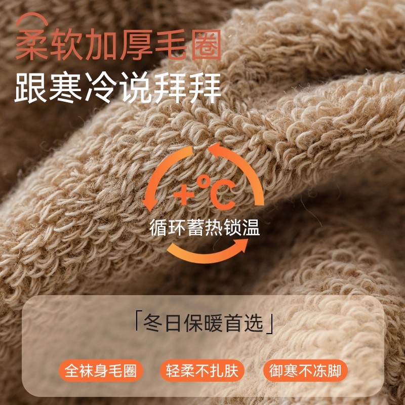 厚袜子女秋冬季 中筒棉袜加厚加绒睡眠保暖月子袜冬天仿羊毛圈长袜
