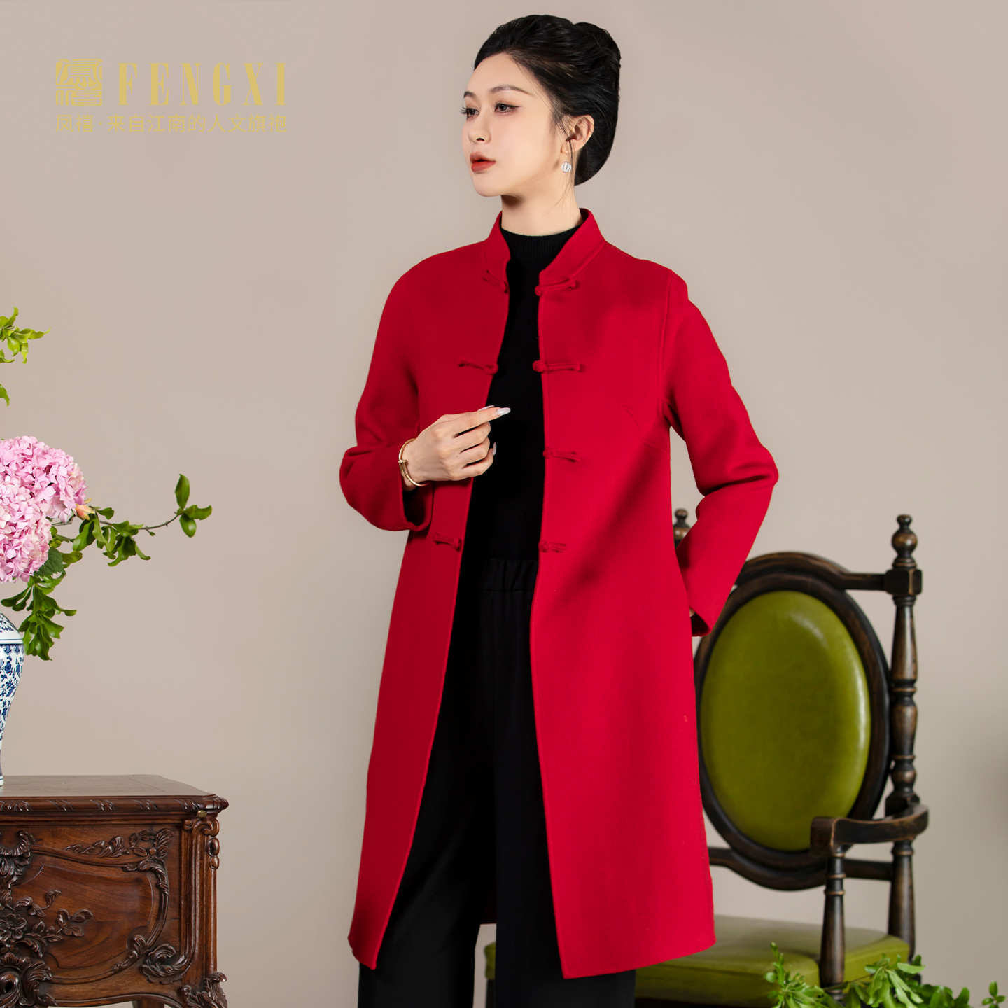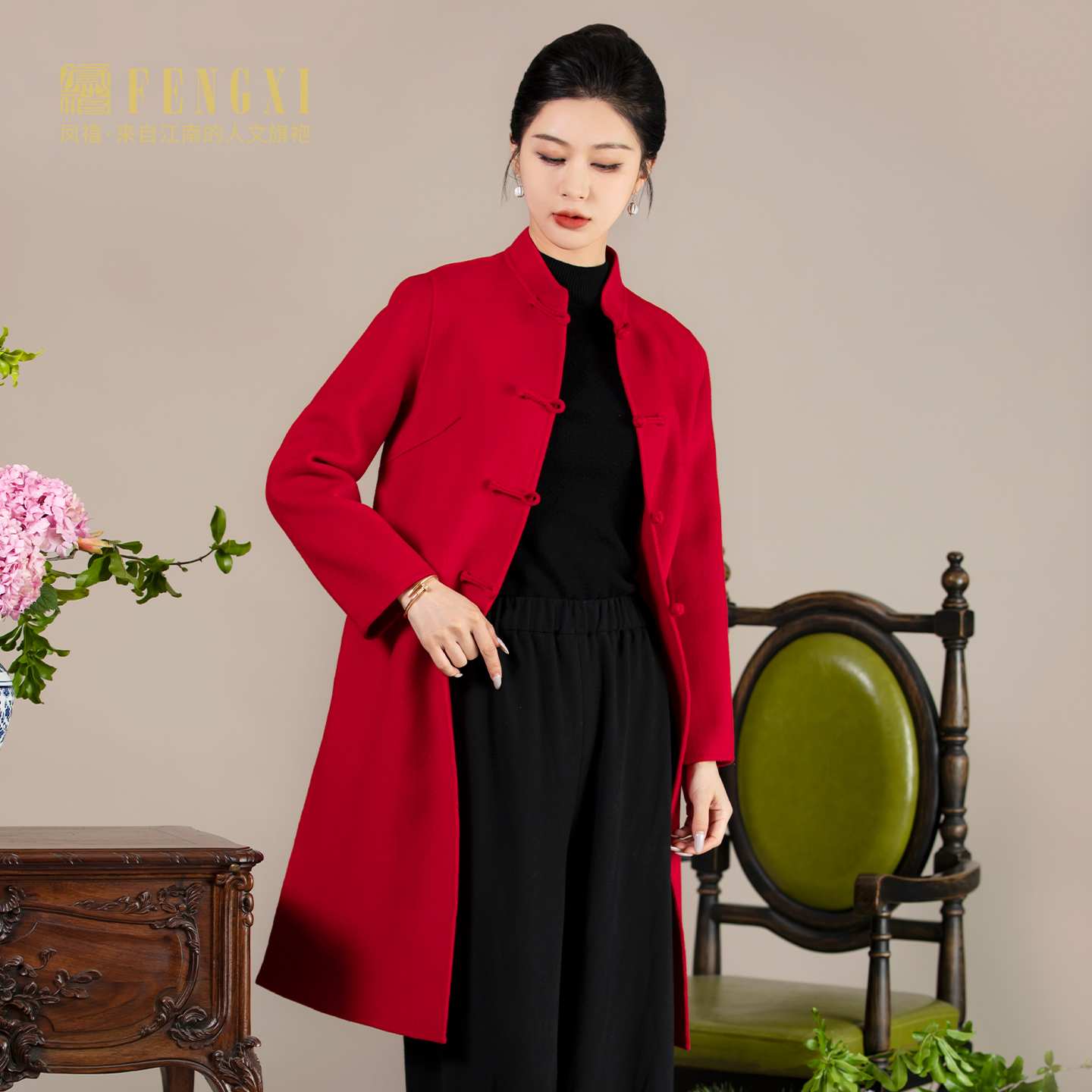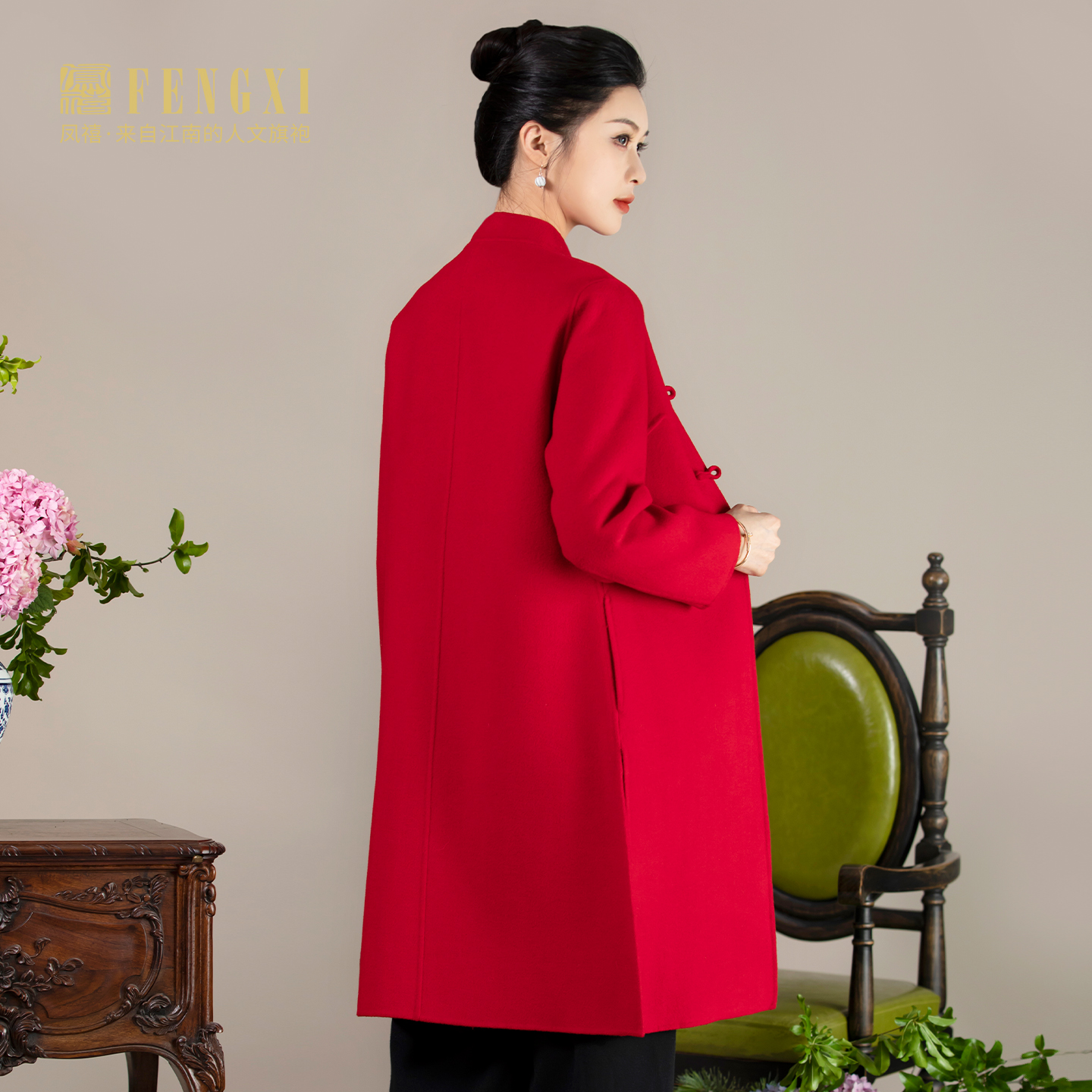 凤禧双面呢羊毛大衣女高级感气质宽松显瘦中长款 休闲 毛呢外套中式