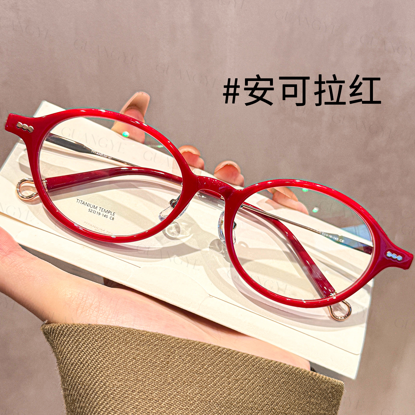 大框超轻TR90近视架框男女同款 圆形复古潮眼镜定制成品光学镜纯钛