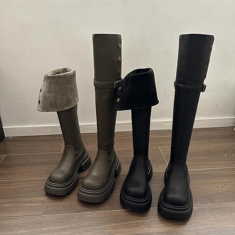 厚底2025早秋新款 靴 两穿长筒过膝靴子女粗跟加绒长靴时装