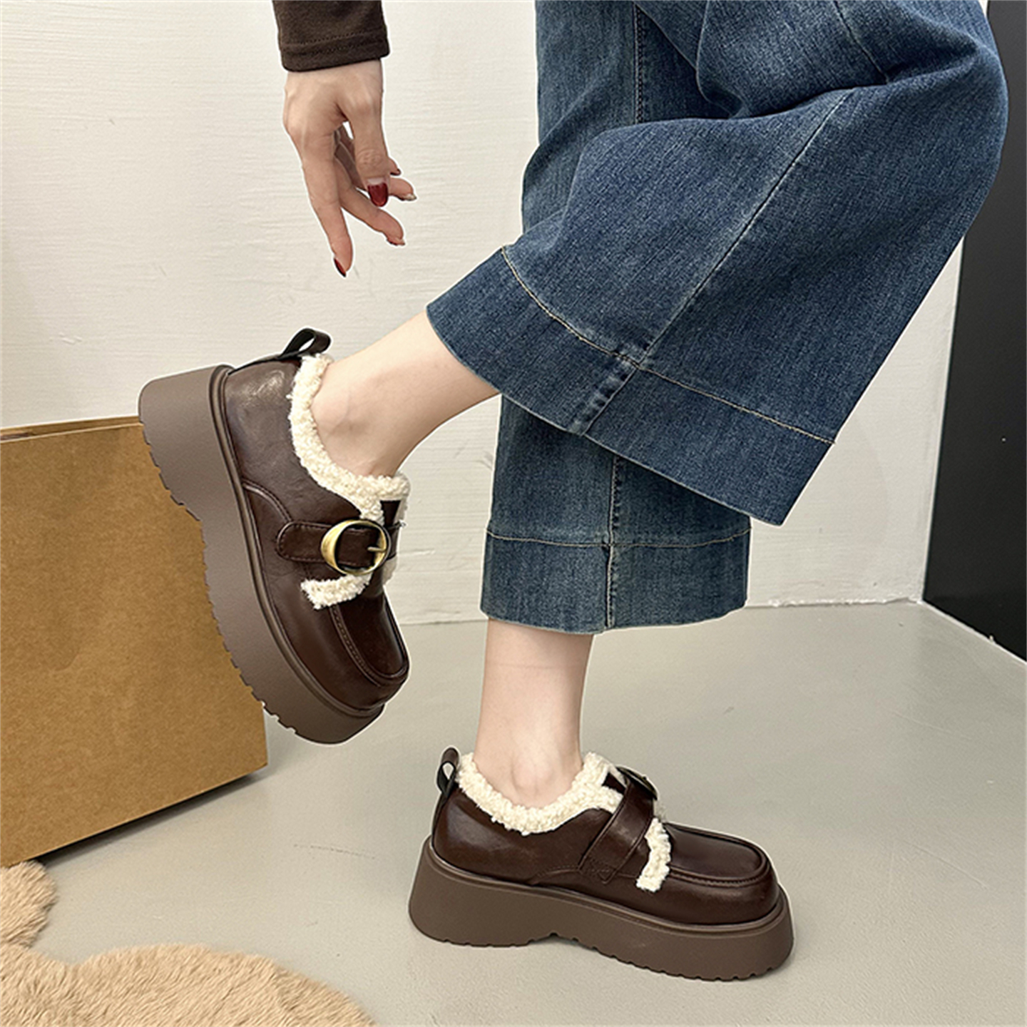 增高气质鞋 英伦风厚底小皮鞋 加绒一脚蹬乐福鞋 新款 子 女2025年秋季