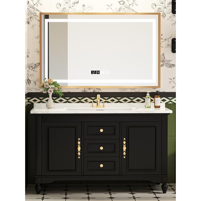 美式 陶瓷岩板智能洗手洗脸台盆柜 橡木简约浴室柜组合卫生间落地式