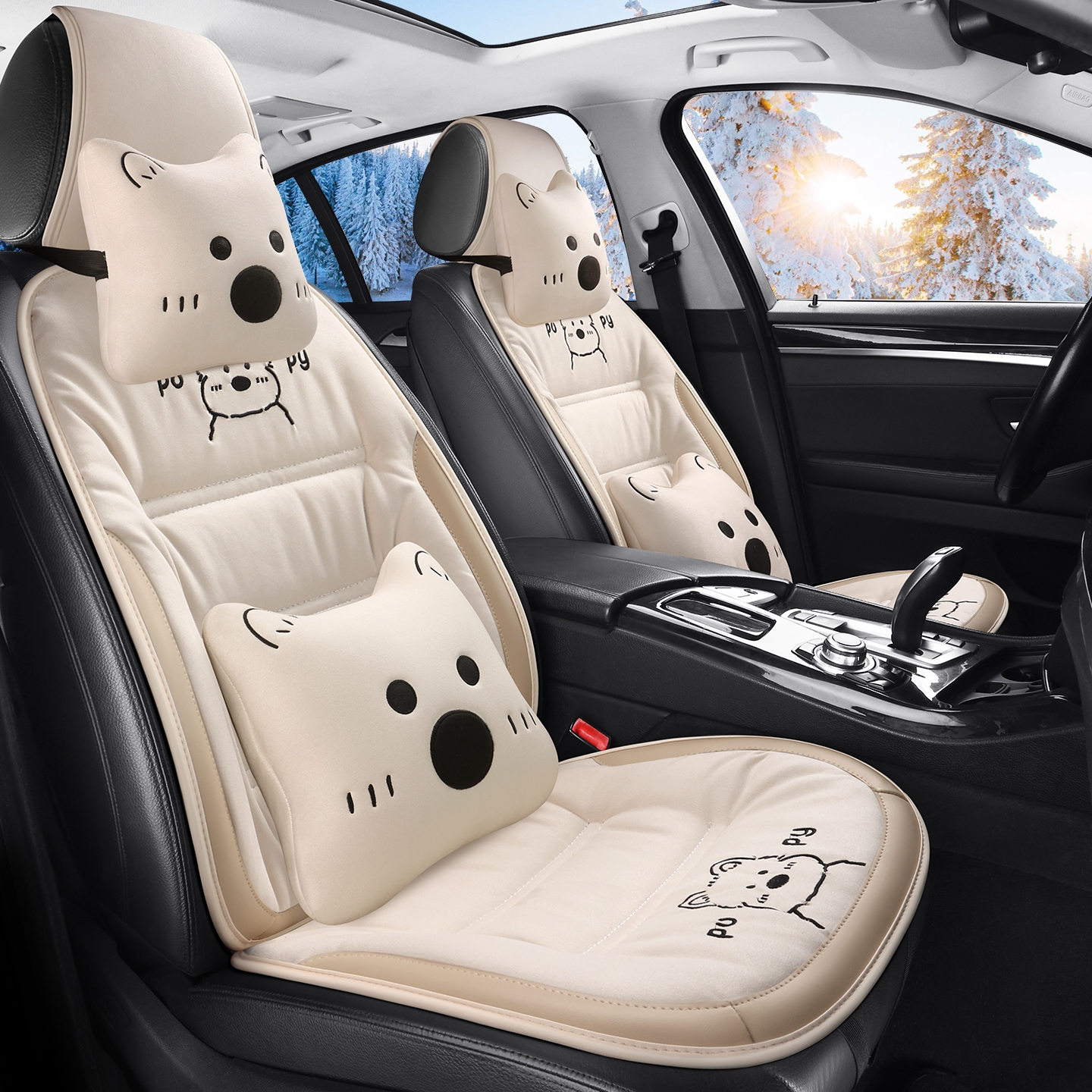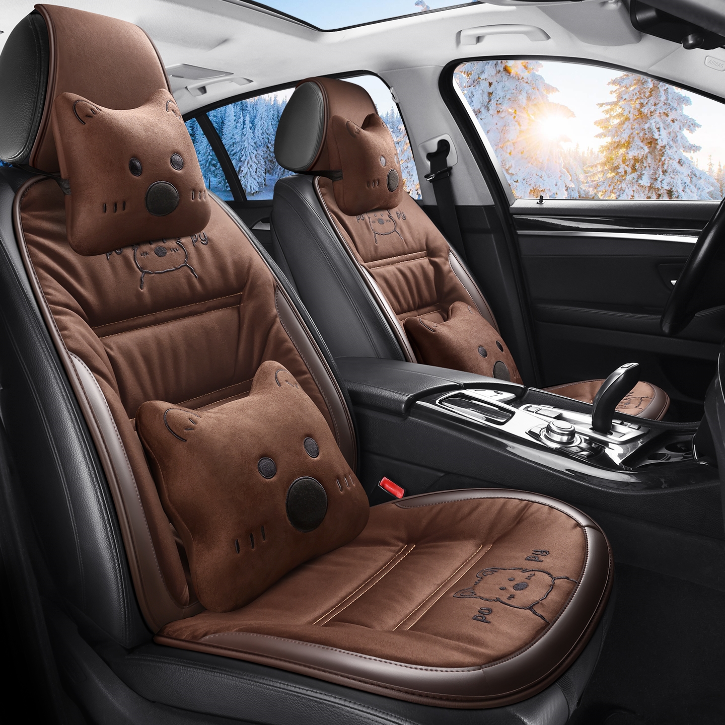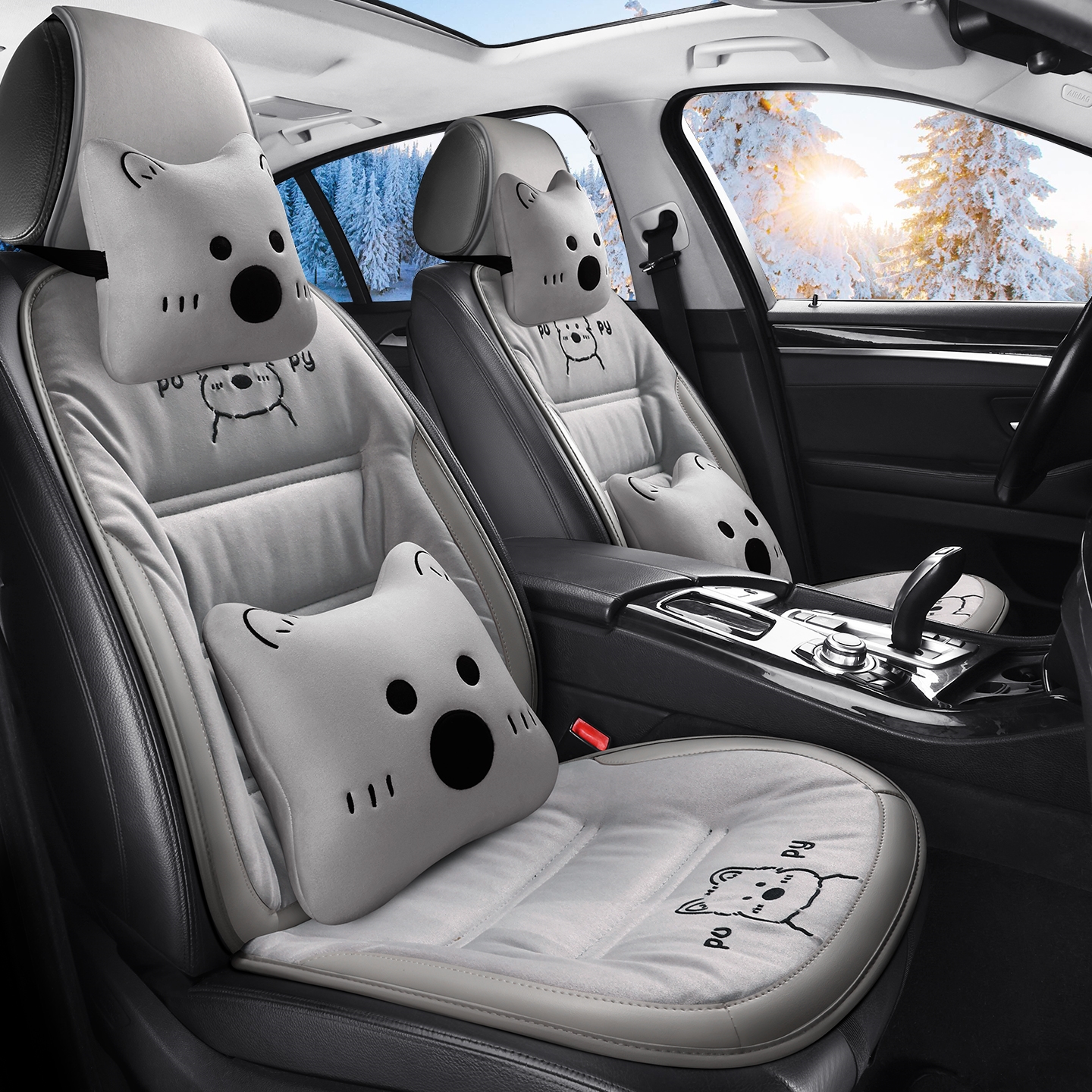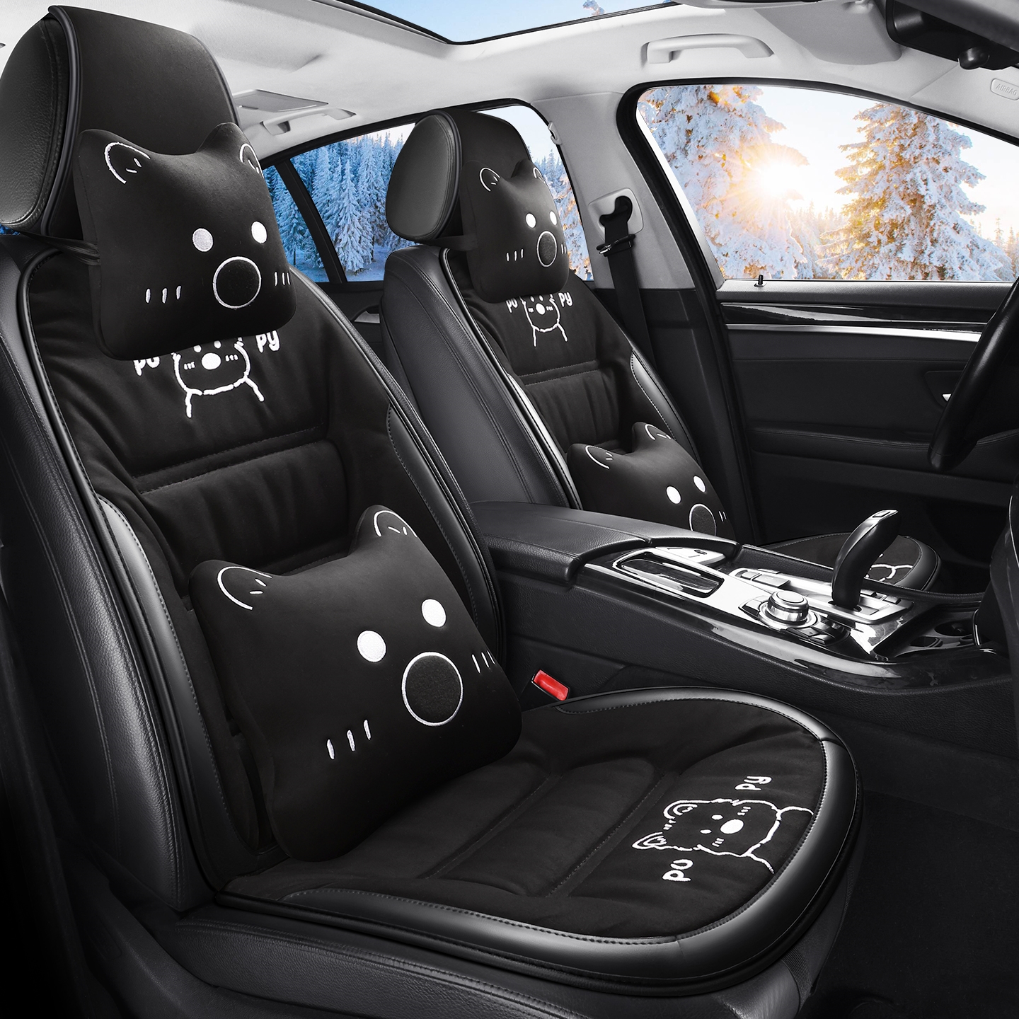 汽车坐垫秋冬毛绒可爱座垫冬季 座套 后排座椅套单片三件套后座新款