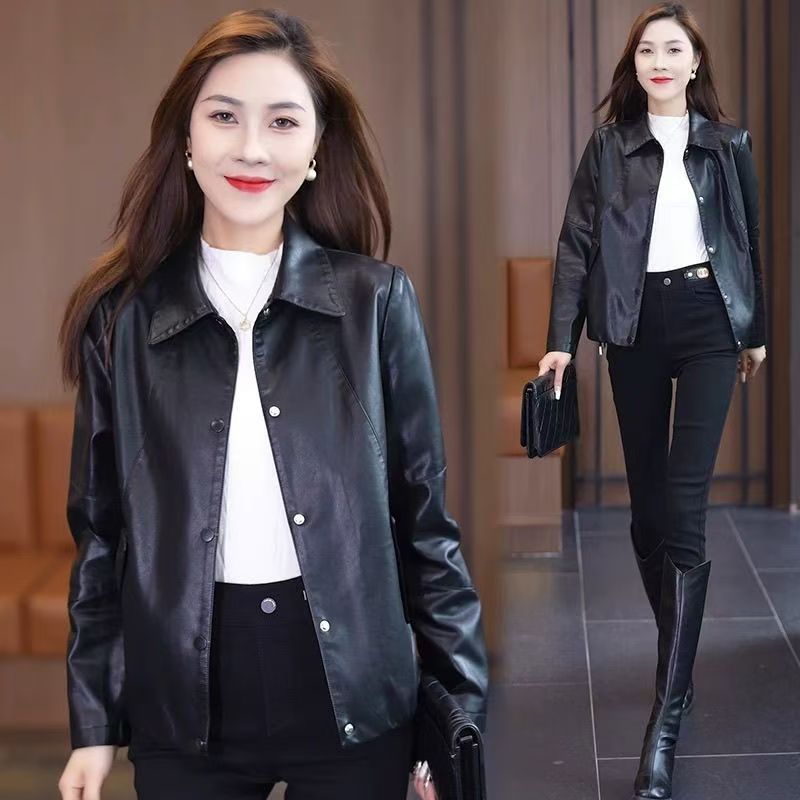 韩版 新款 皮衣外套女短款 装 显瘦立领机车水洗软皮夹克上衣 2025秋季