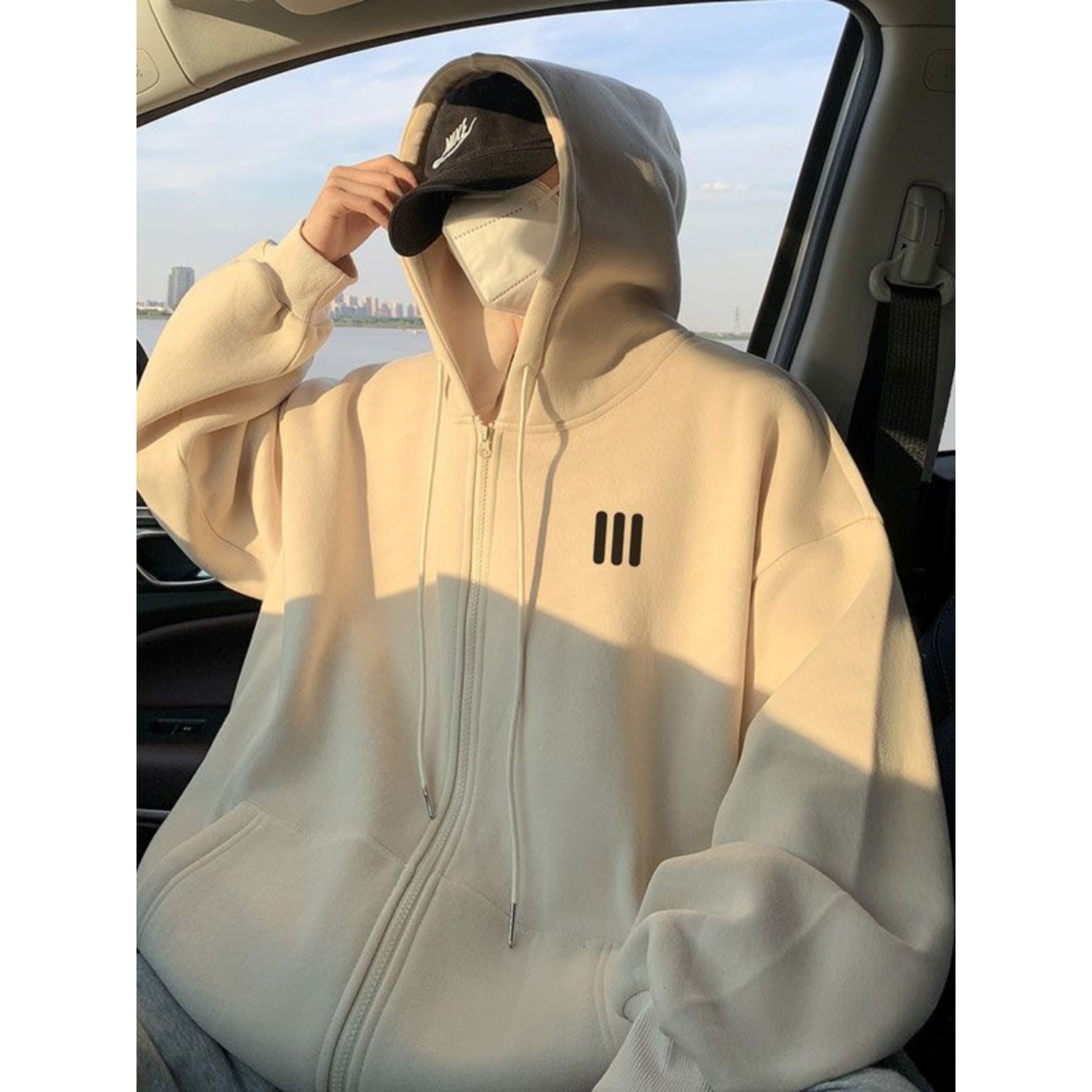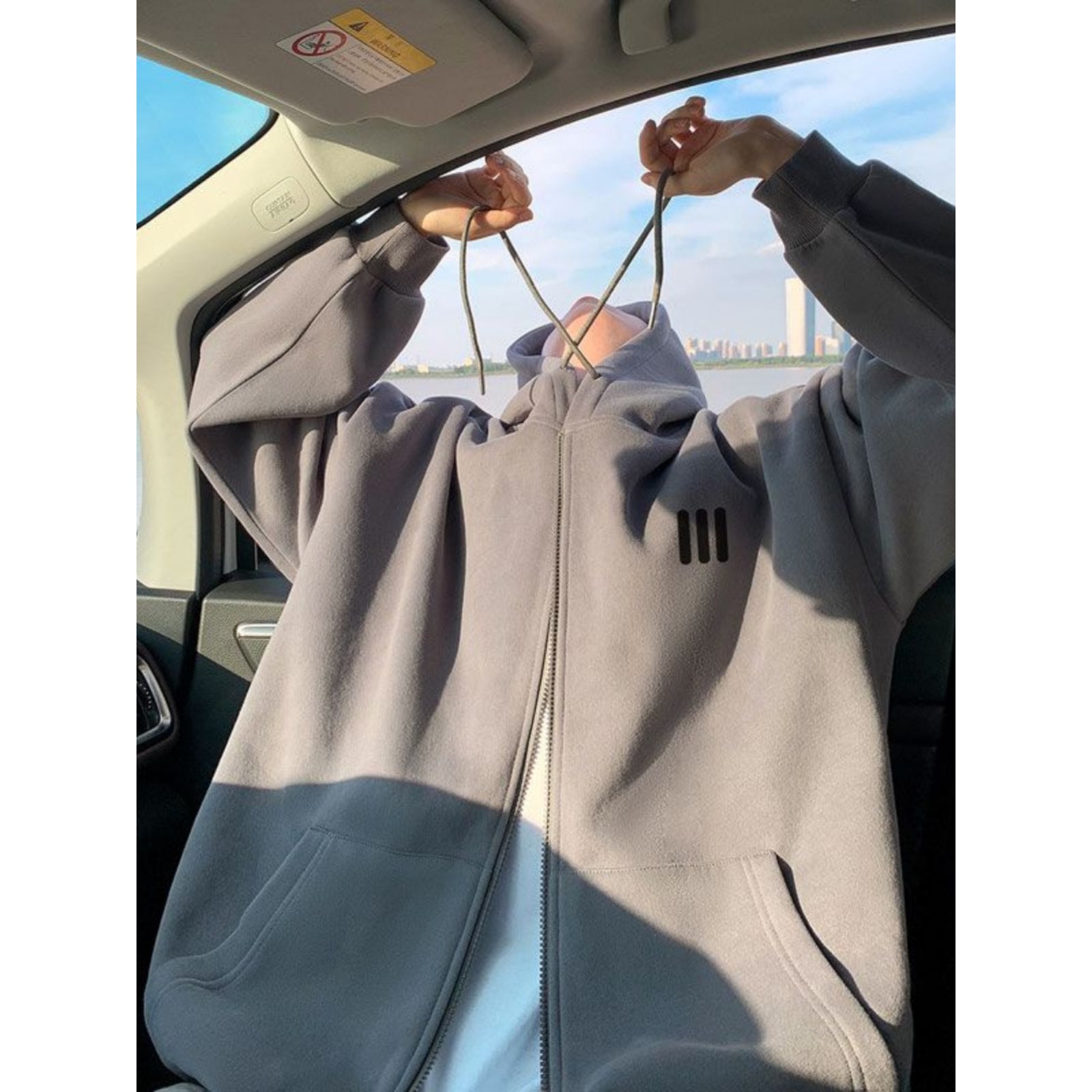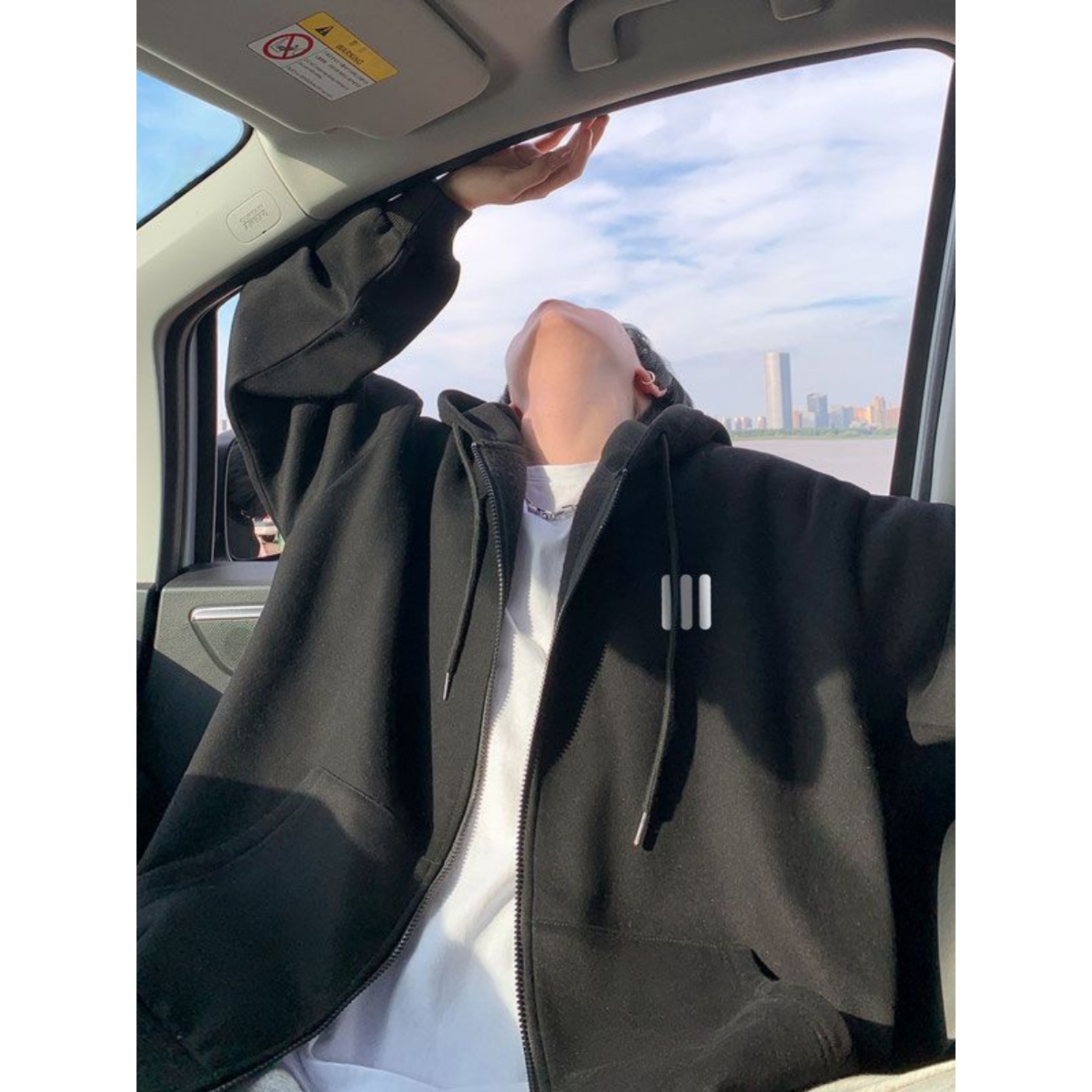 外套上衣 连帽卫衣男女童秋冬青少年宽松加绒帽衫 中大儿童美式 开衫