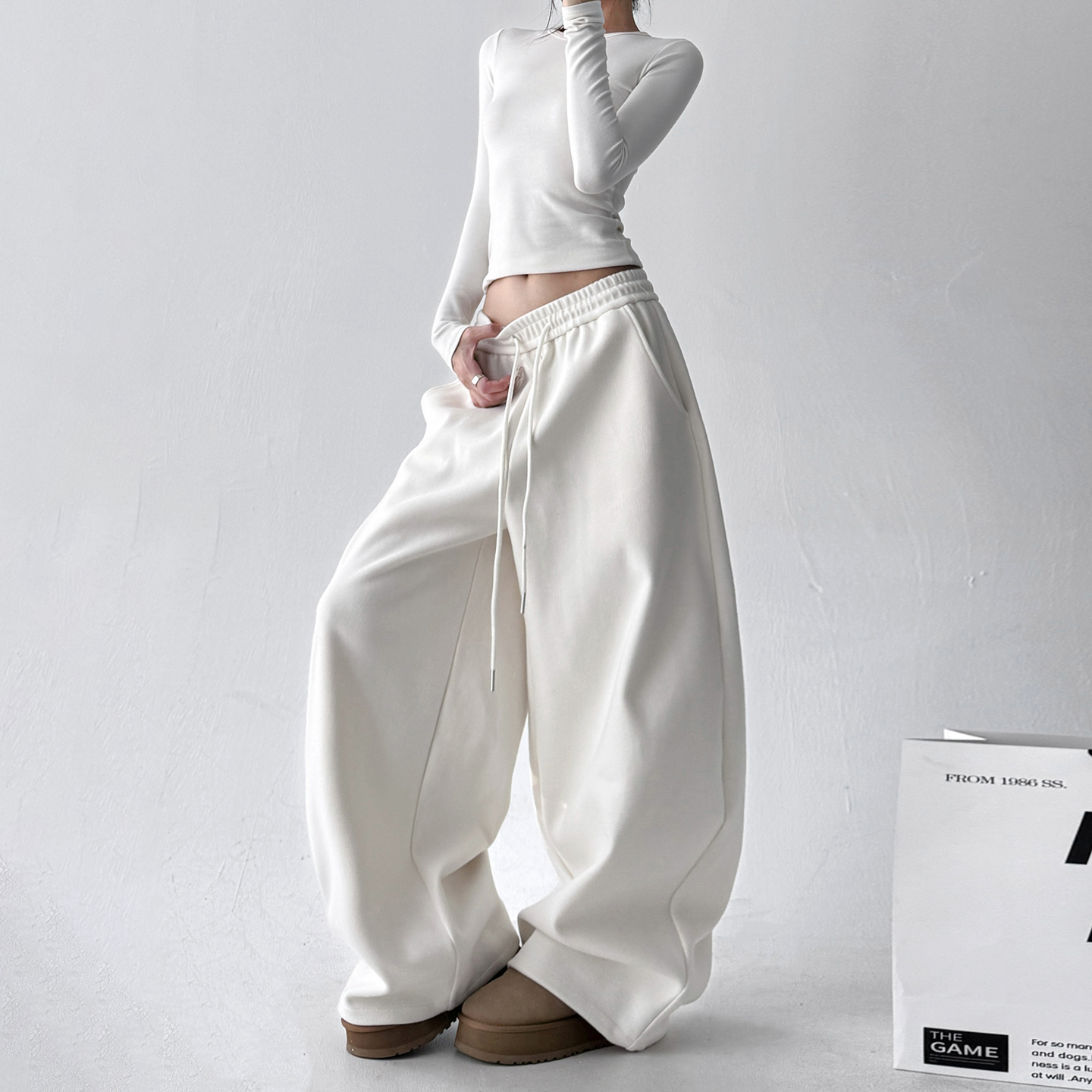 加厚宽松显瘦垂感休闲阔腿长裤 女秋冬新款 子 辣妹抽绳运动裤 美式