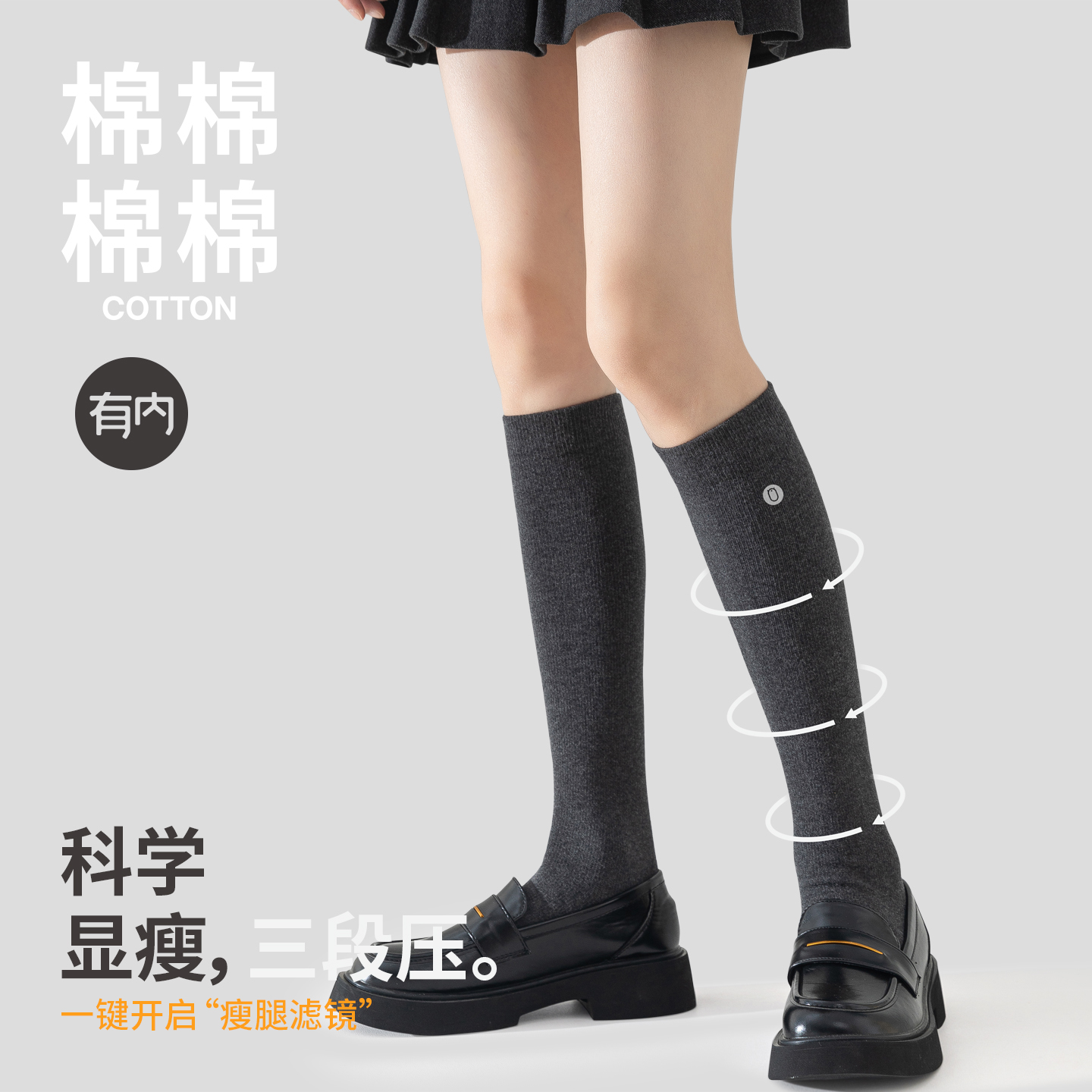 有内压力小腿袜子女显瘦秋冬款 ins潮jk袜加厚防滑不掉黑色长筒袜