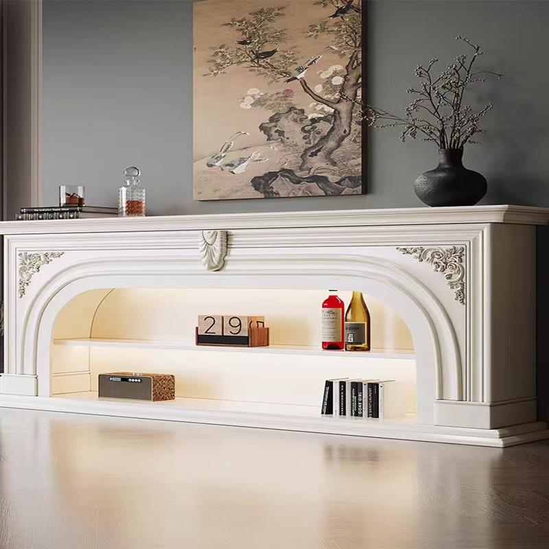 法式 饰柜白色简约客厅入户玄关柜直播间摆件展示柜置物架 壁炉装