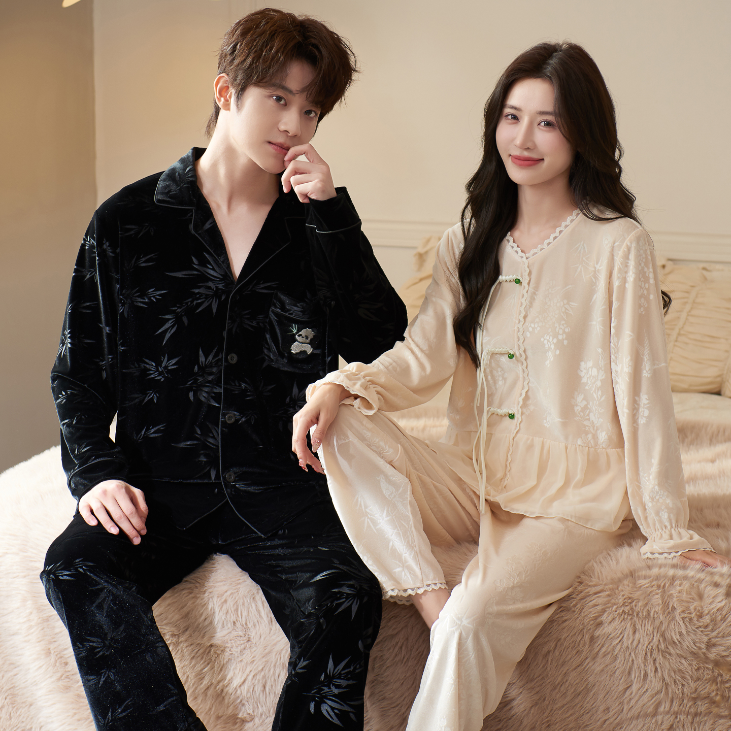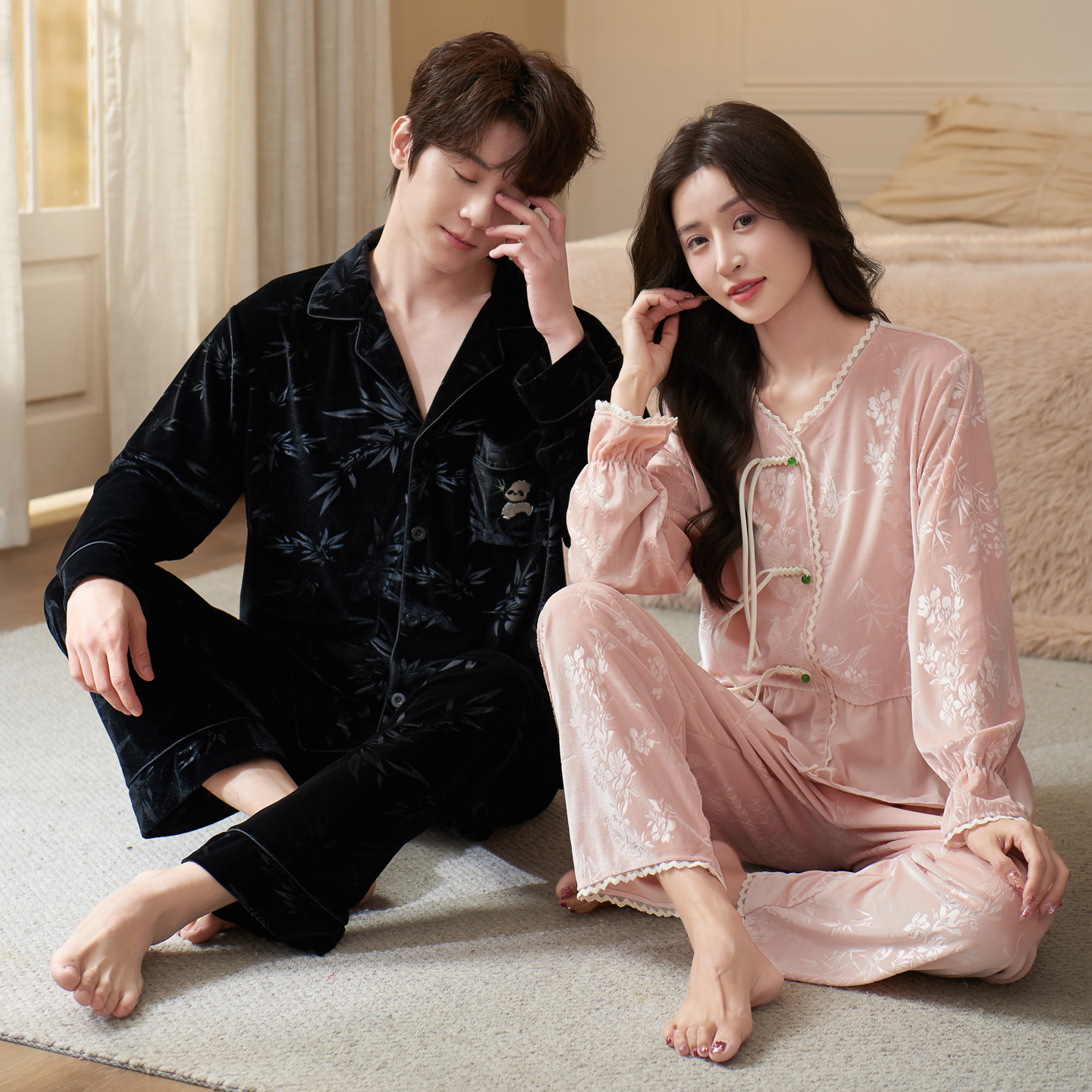 金丝绒长袖 套装 新中式 家居服大码 国风男士 乐姿梦情侣睡衣女秋冬季