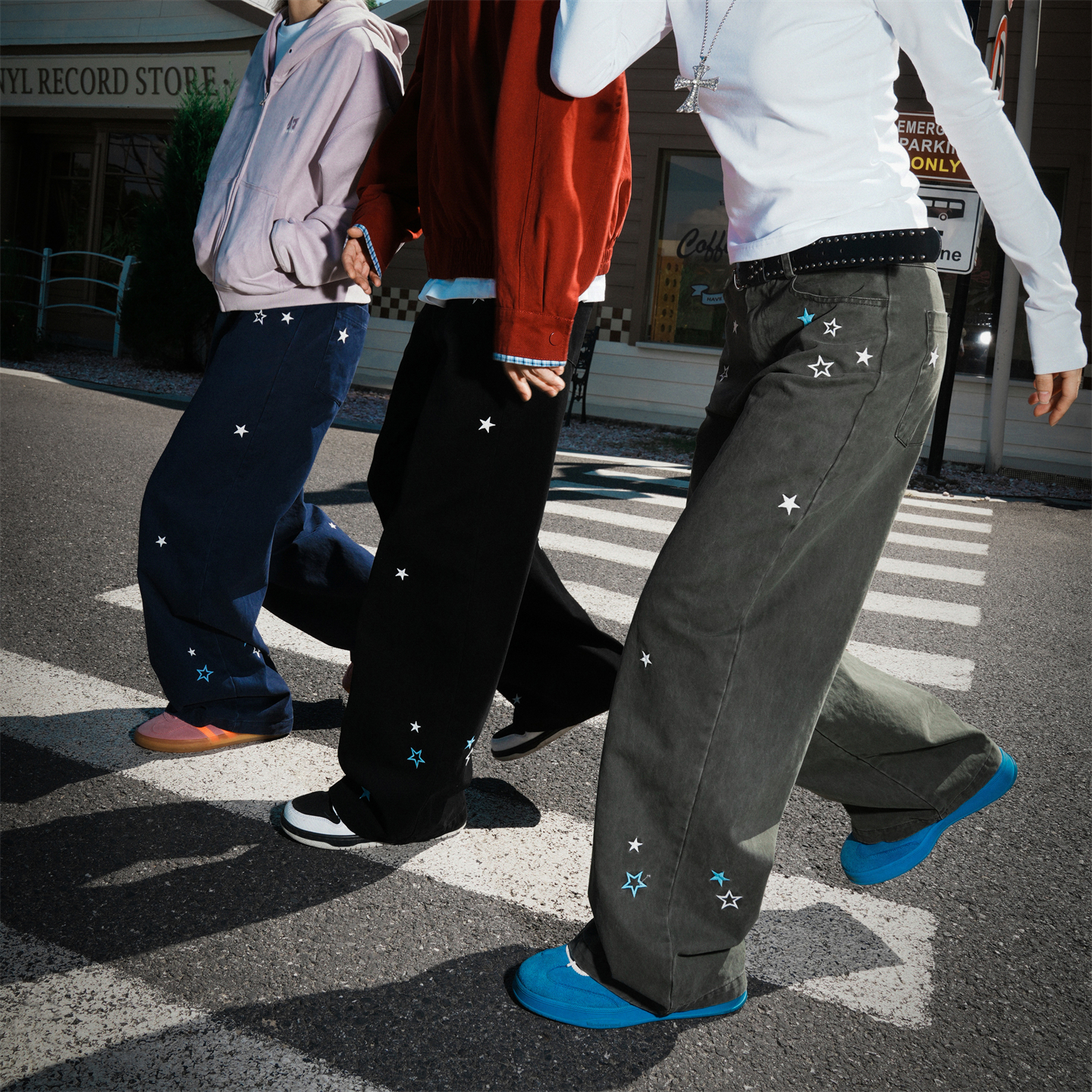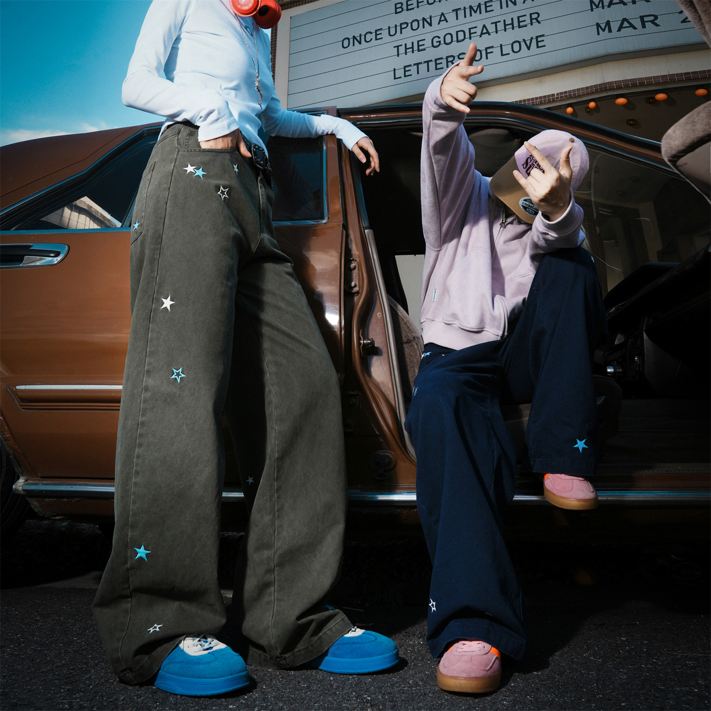 直筒堆堆裤 GUUKA&matsui联名小狗阔腿牛仔裤 子美式 复古水洗裤 男款