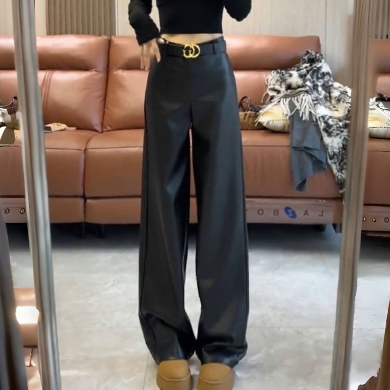 女显瘦直筒长裤 CLIMAX VISION极简风高级质感纹理打褶阔腿皮裤