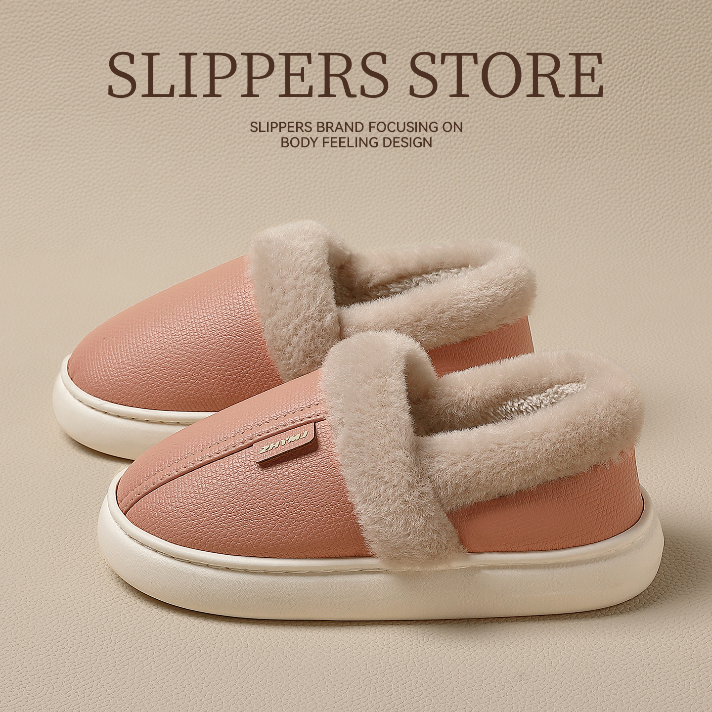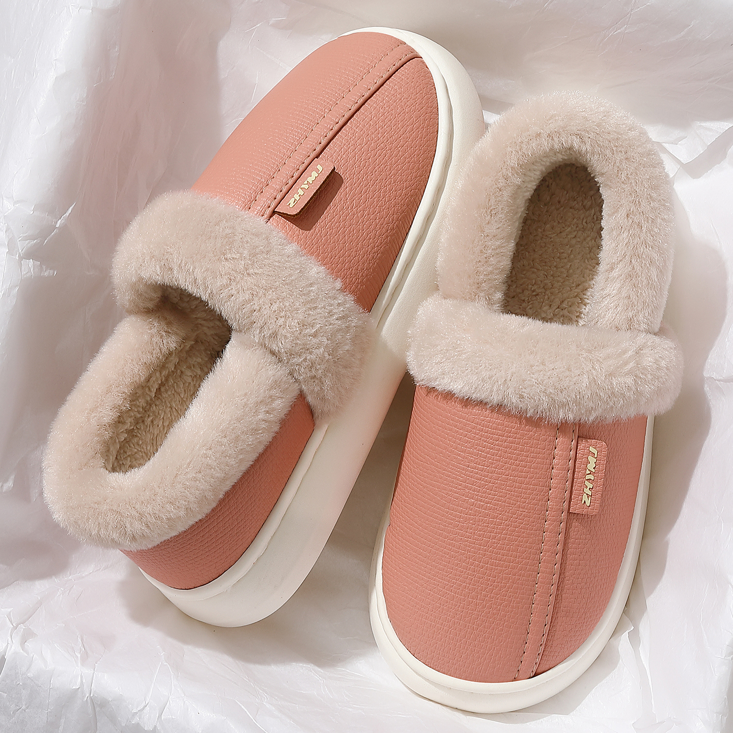 男款 室内家居保暖厚底防水老人加绒棉鞋 女士冬季 中老年防滑棉拖鞋