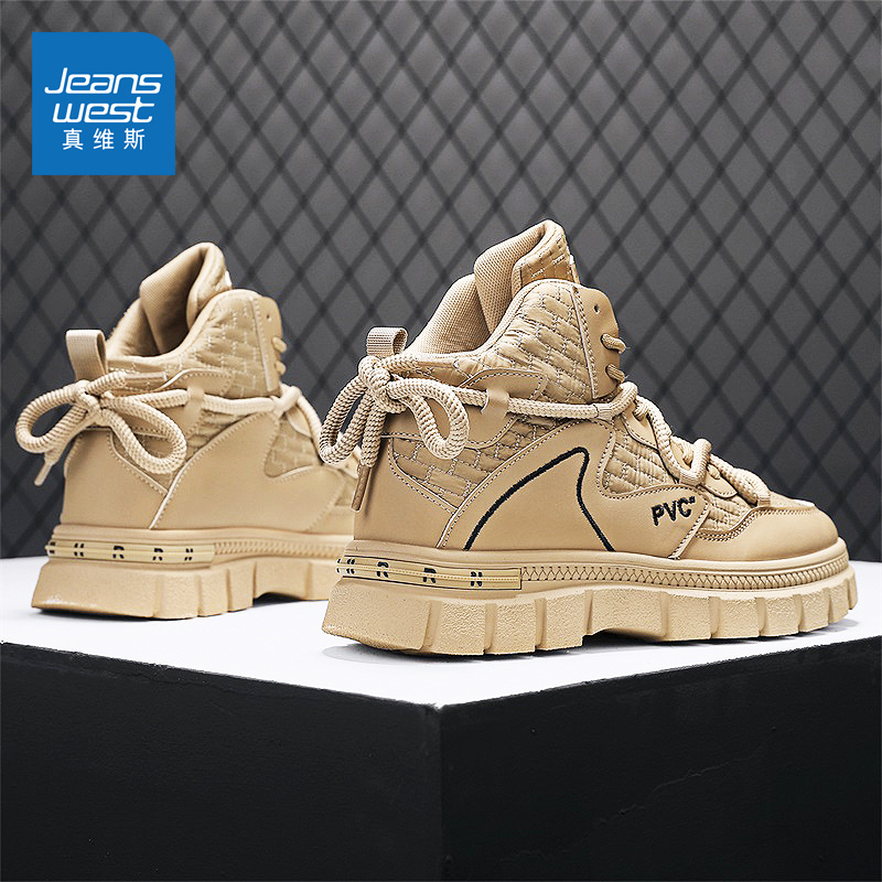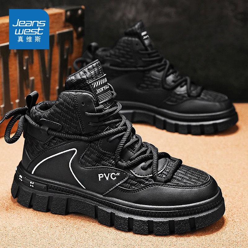 靴子 真皮防水厚底增高工装 森马马丁靴男秋季 高帮百搭休闲白色板鞋