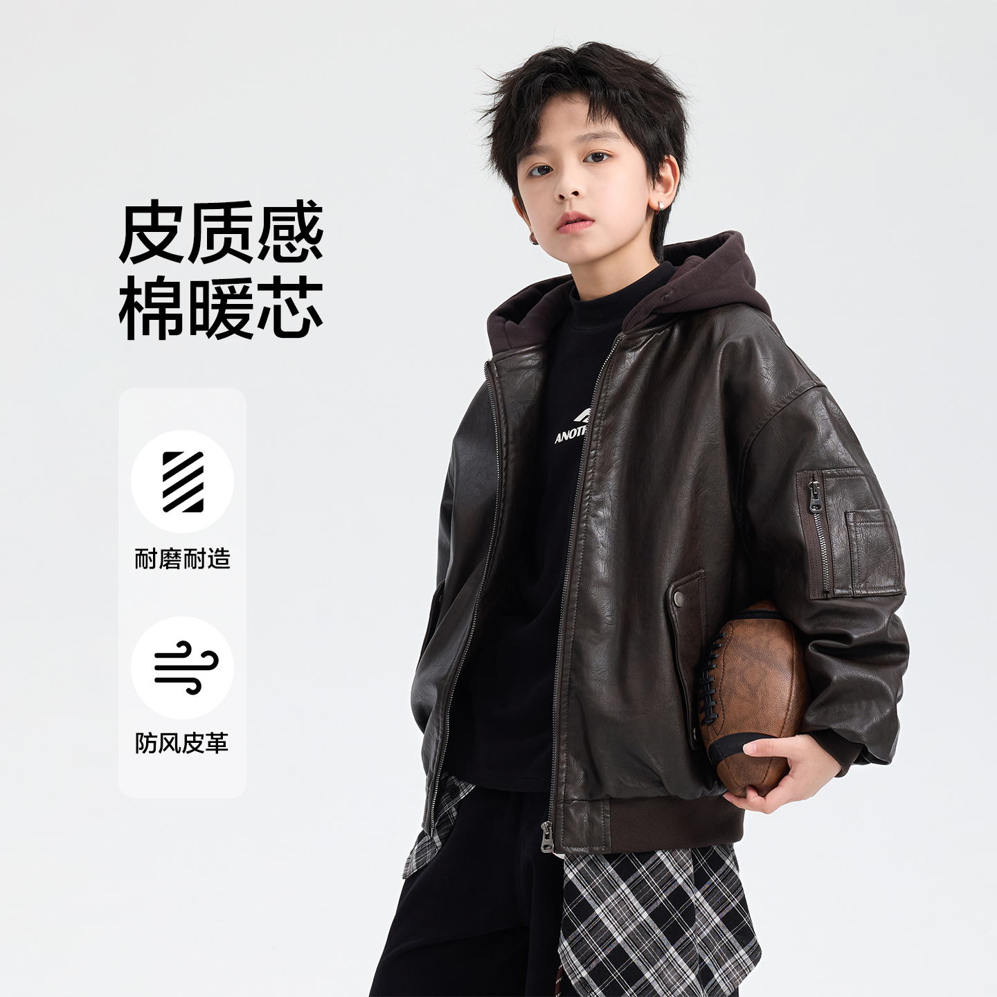 NH真维斯青少年冬季 潮牌百搭宽松立领保暖PU皮棉服外套 新款