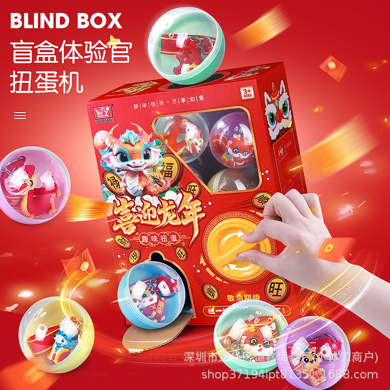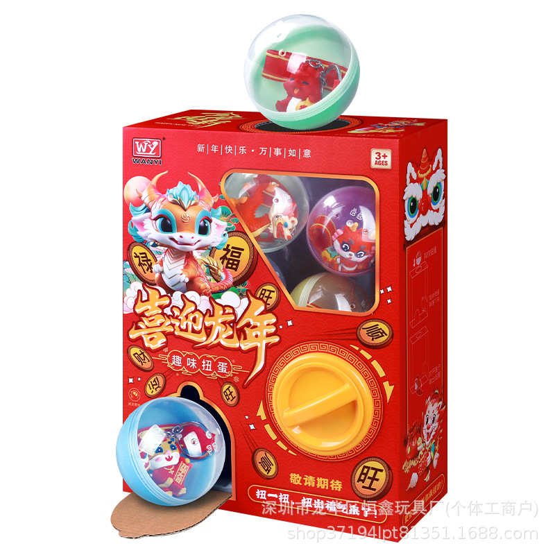 批发新年贺喜扭蛋机趣味盲盒抓娃娃机夹公仔吊坠扭蛋机龙年过年礼