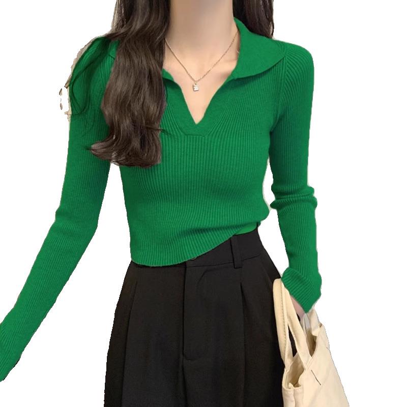 显瘦针织上衣女装 三福打底衫 小V领坑条内搭毛衣修身 秋季 2025新款