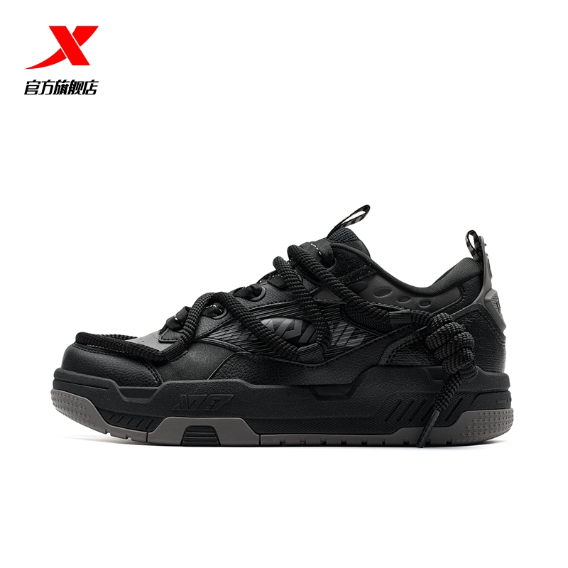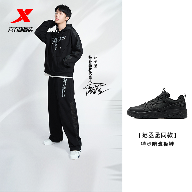黑色休闲鞋 特步范丞丞同款 秋冬厚底通勤运动鞋 男鞋 子 全黑公务鞋