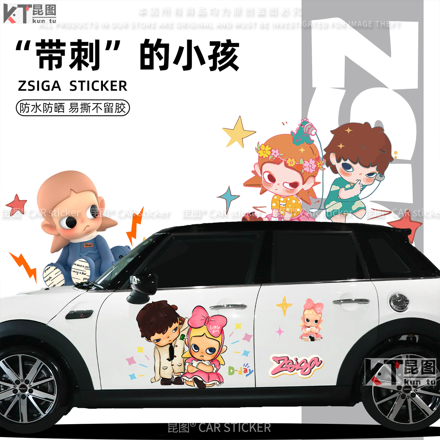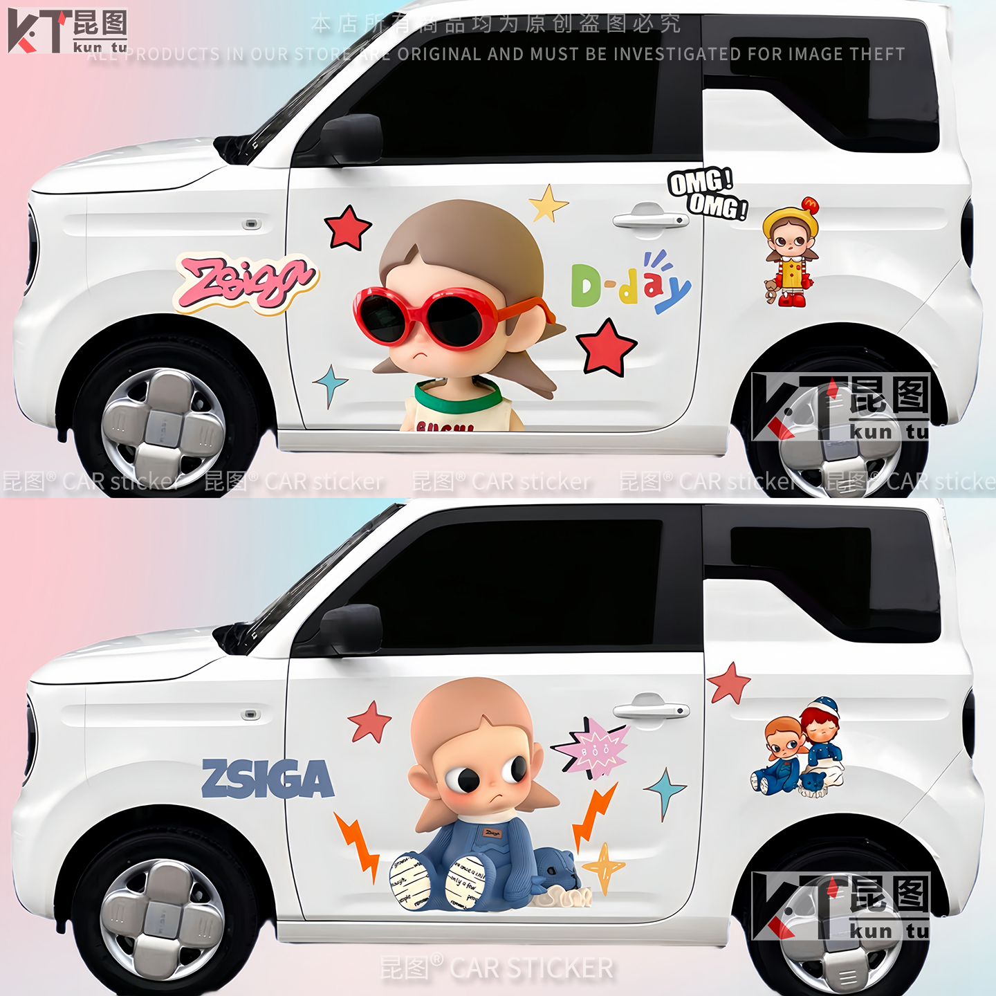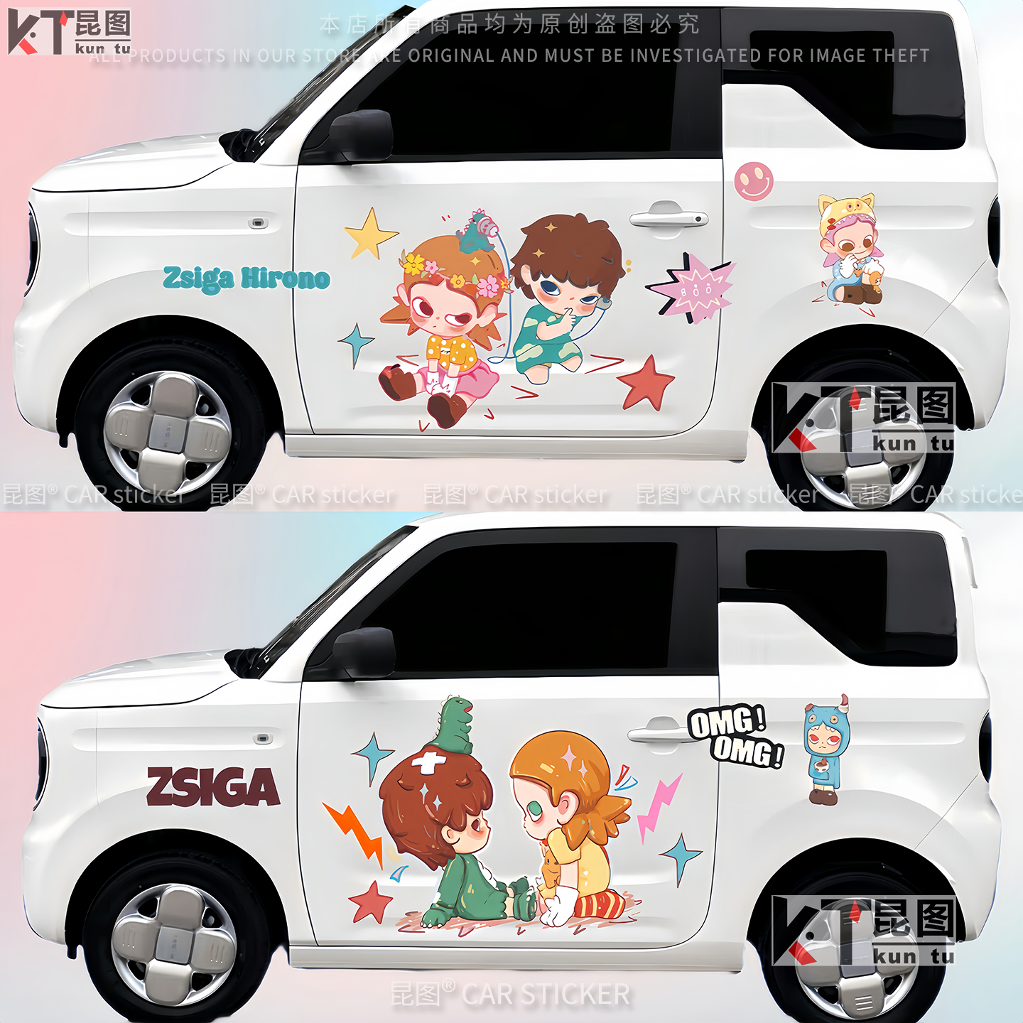 适用吉利熊猫MINI卡通可爱zsiga汽车贴纸车身改装 饰车门两侧拉花