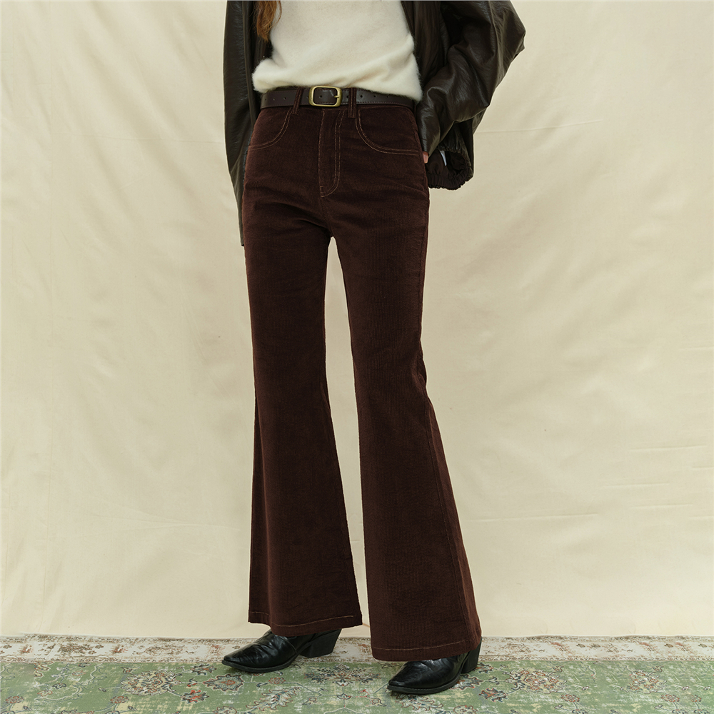 高腰喇叭长裤 设计师款 马蹄裤 女复古修身 18415528 佐丹奴灯芯绒长裤