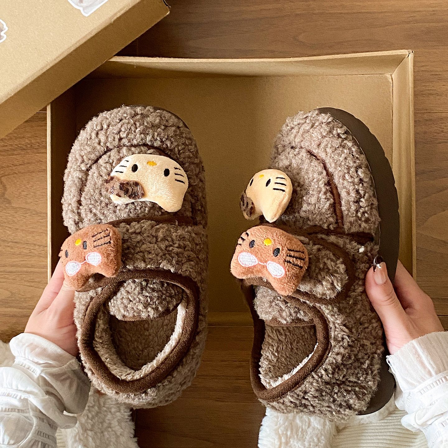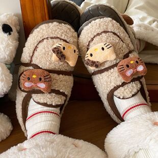 女生外穿EVA休闲保暖舒适棉鞋 可爱小猫毛茸茸棉拖鞋 新款 2025冬季