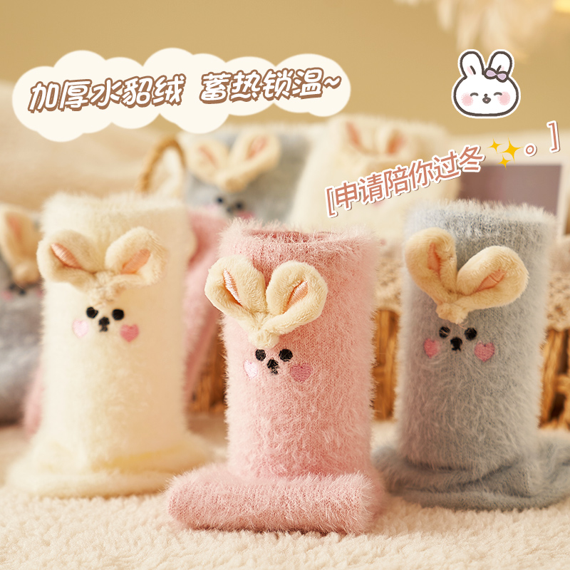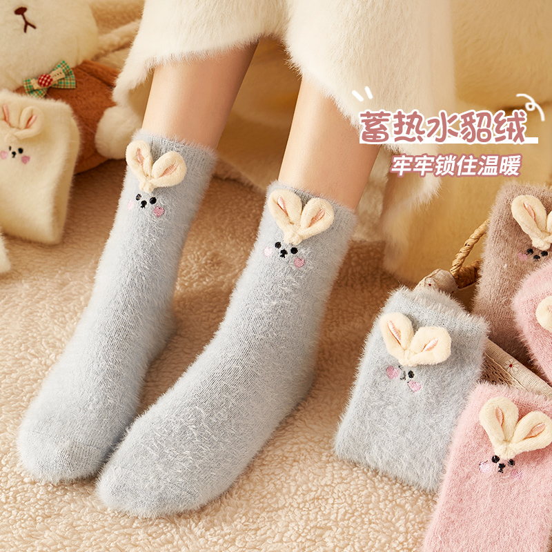 地板睡眠袜 爆款 趣味卡通水貂绒加绒加厚袜子女秋冬款 可爱2025新款
