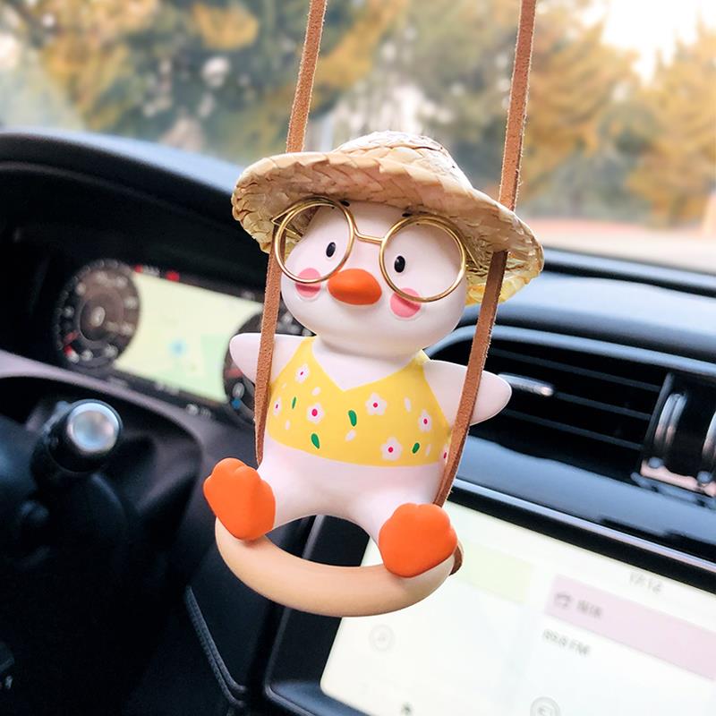 荡秋千鸭汽车挂件车内吊饰网红车载香薰挂饰后视镜吊坠车上装 饰品