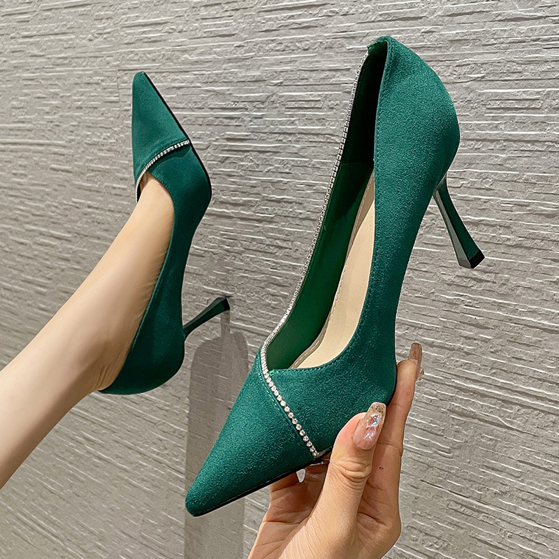 宽楦羊皮尖头细跟通勤浅口单鞋 大码 黑松露 秋冬女鞋 7or9黑色高跟鞋