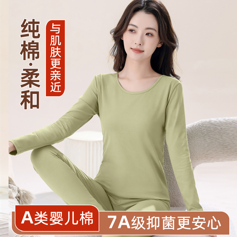 保暖内衣修身 女纯棉薄款 棉毛衫 大码 青年 秋衣秋裤 女士线衣衬裤 套装