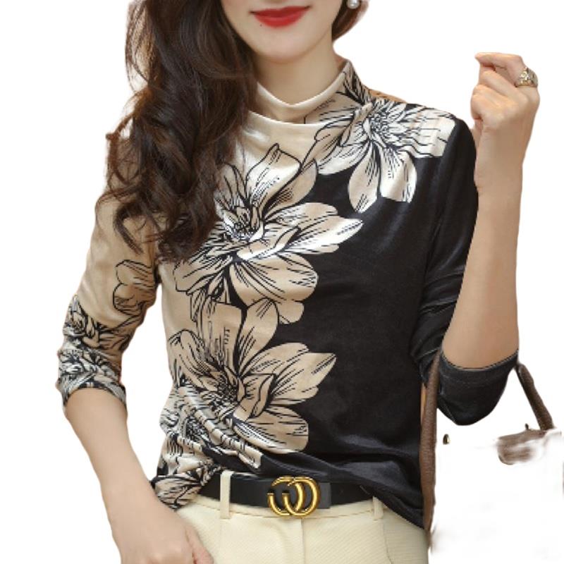 半高领洋气t恤小衫 2025年新款 内搭上1018z 女士装 秋冬金丝绒打底衫