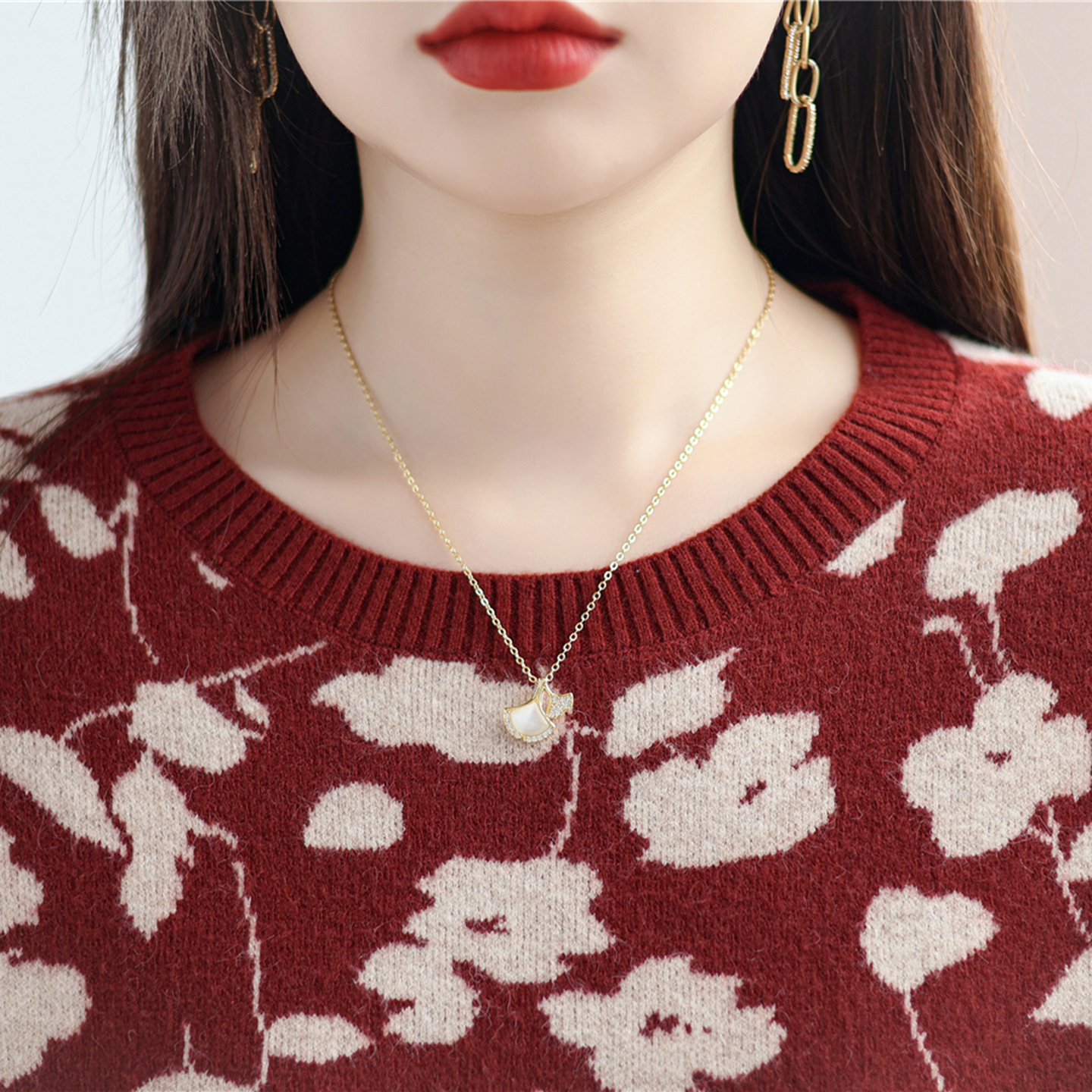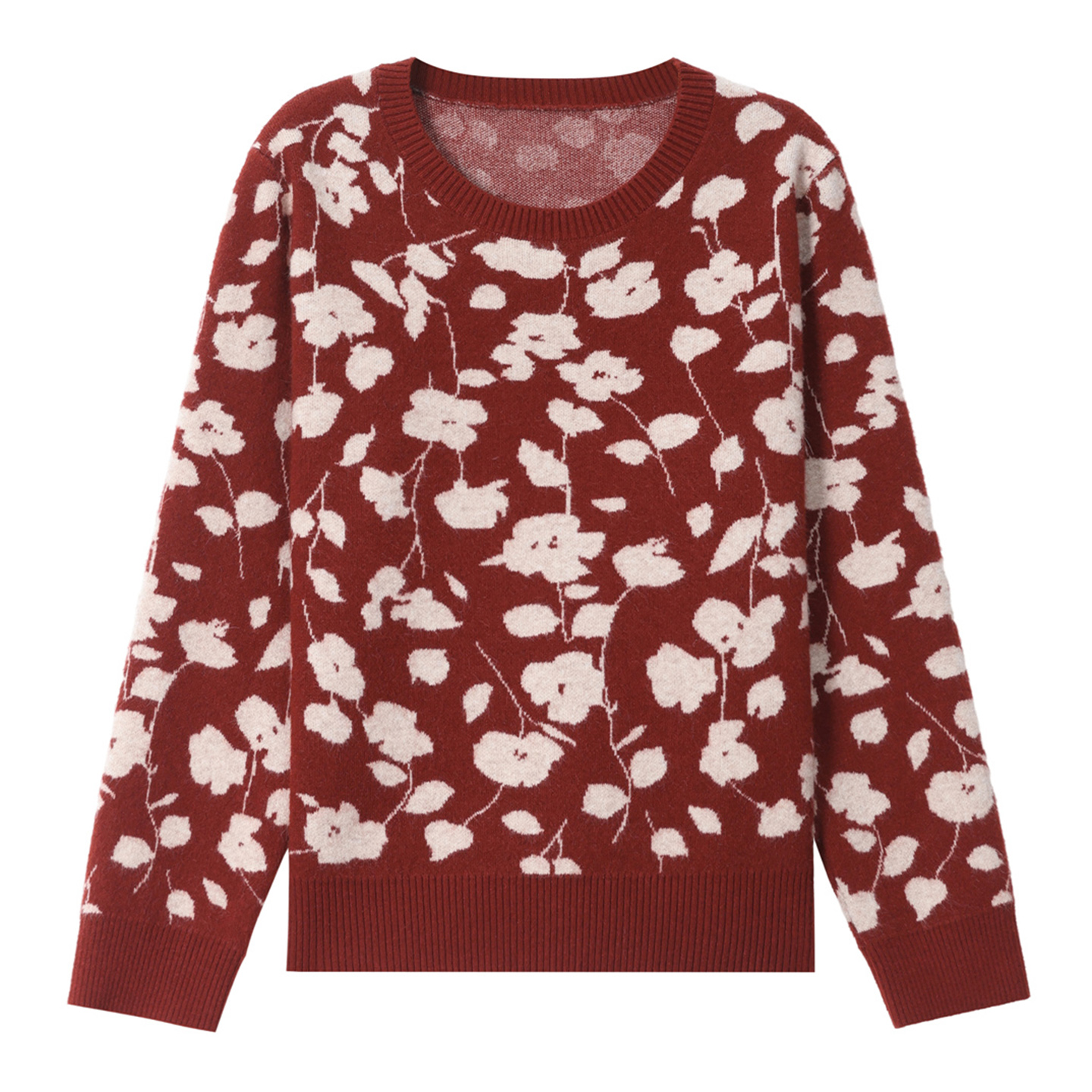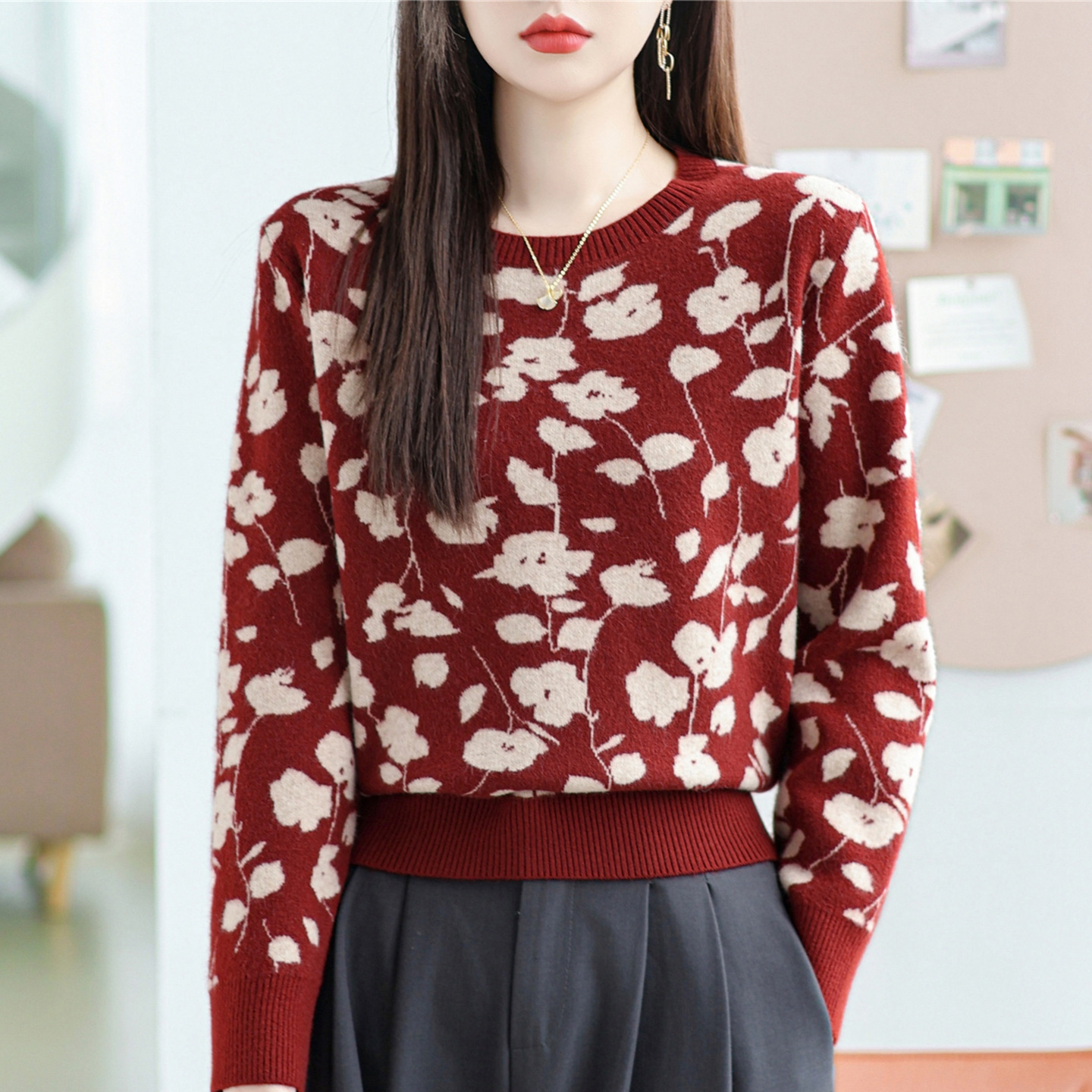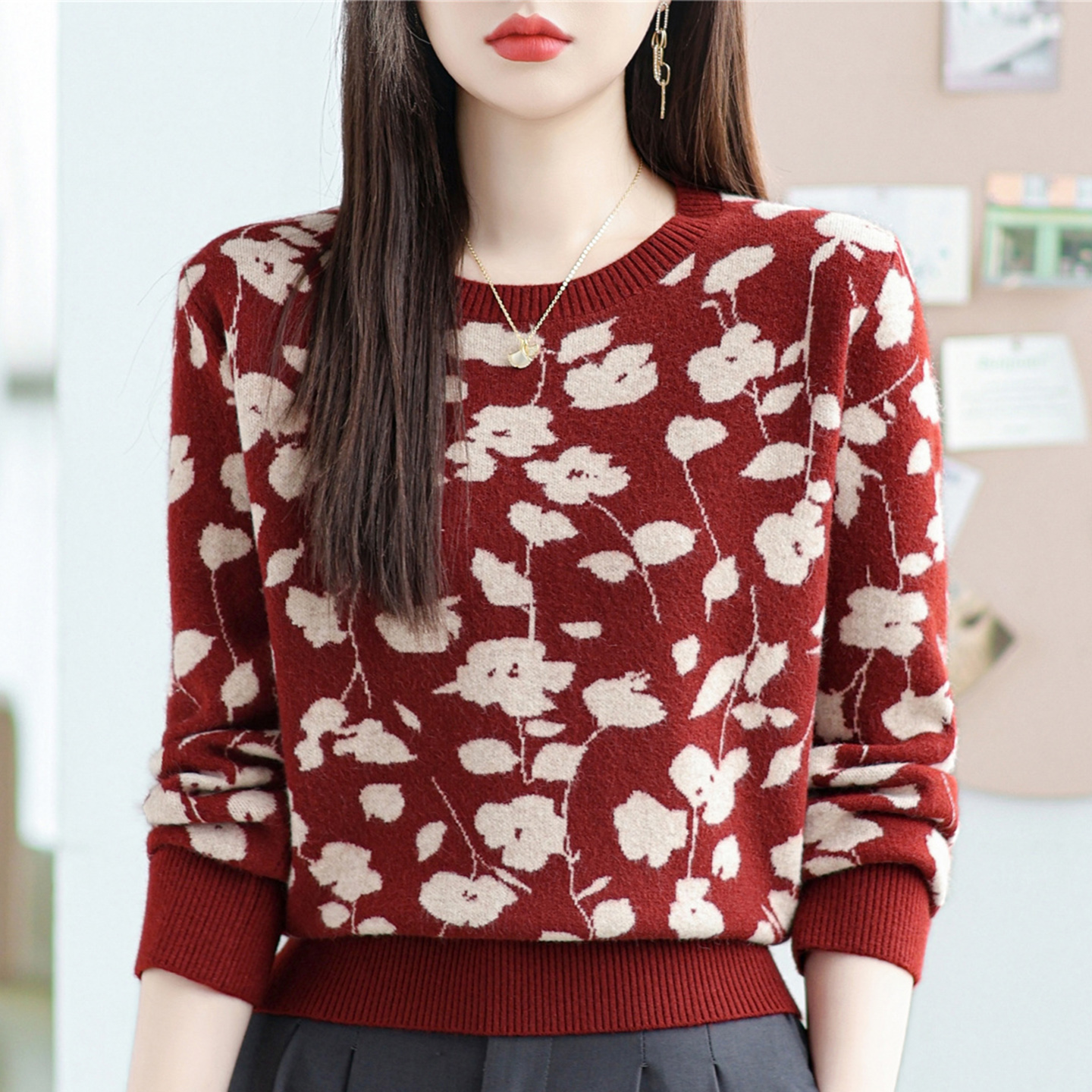 妈妈装 宽松显瘦打底毛衣时尚 提花上衣 2025新款 春秋女士圆领针织衫