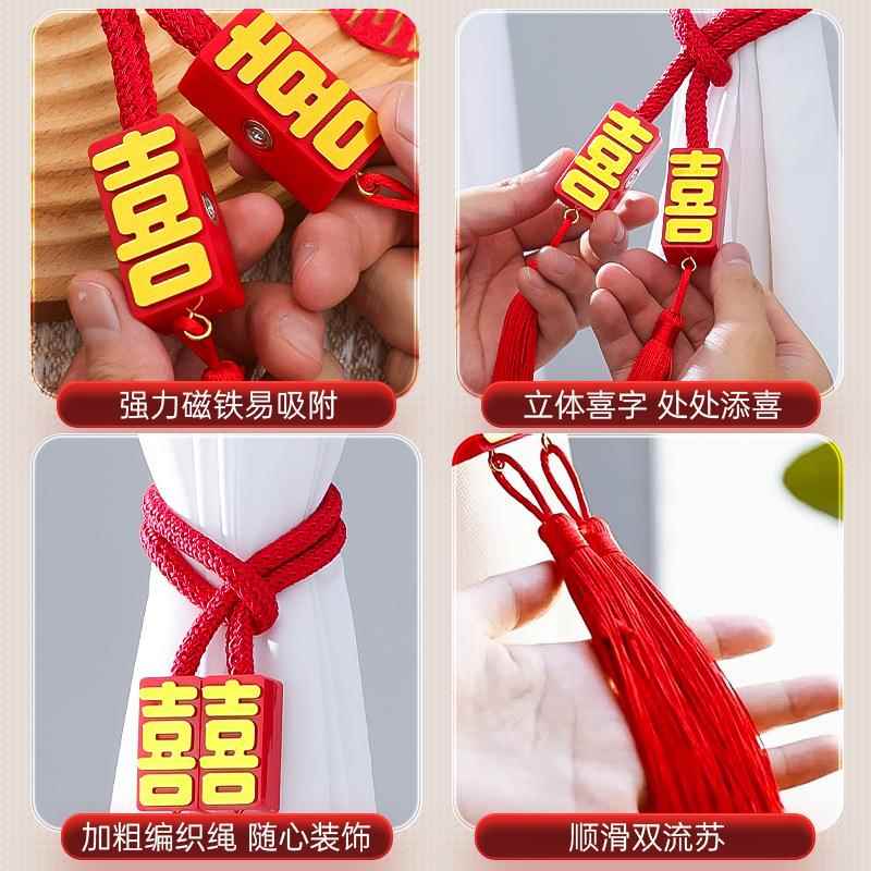 婚礼男女方新房喜字挂饰蝴 饰套装 2025新款 婚房布置结婚窗帘绑带装