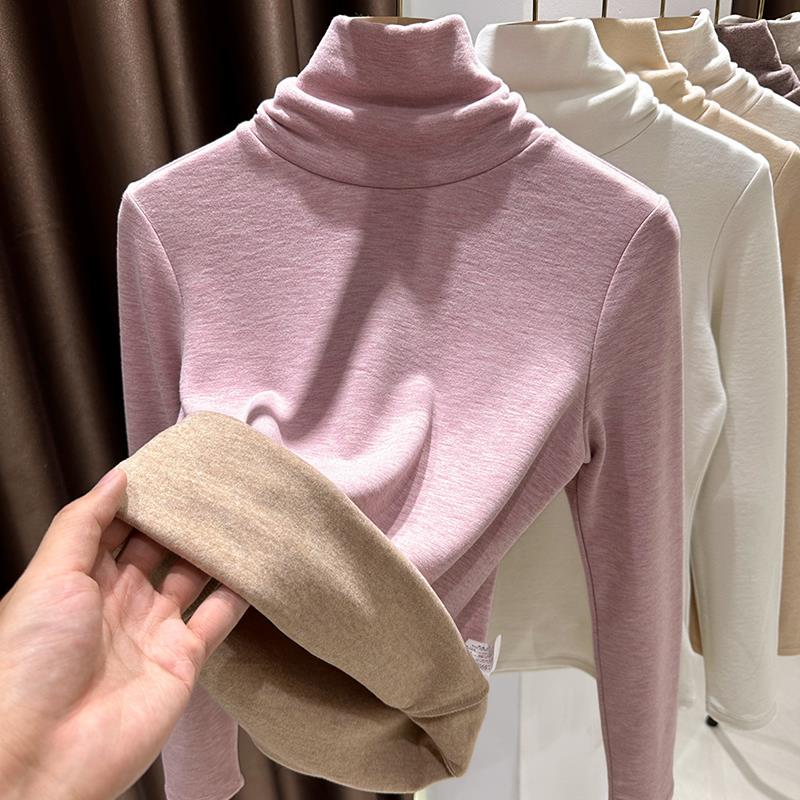 内搭加绒加厚保暖上衣1021z 修身 双面绒高领打底衫 女秋冬新款
